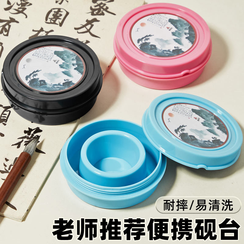 携帯式無洗硯台書道装毛筆墨汁不乾墨防乾墨学生墨皿防漏墨池
