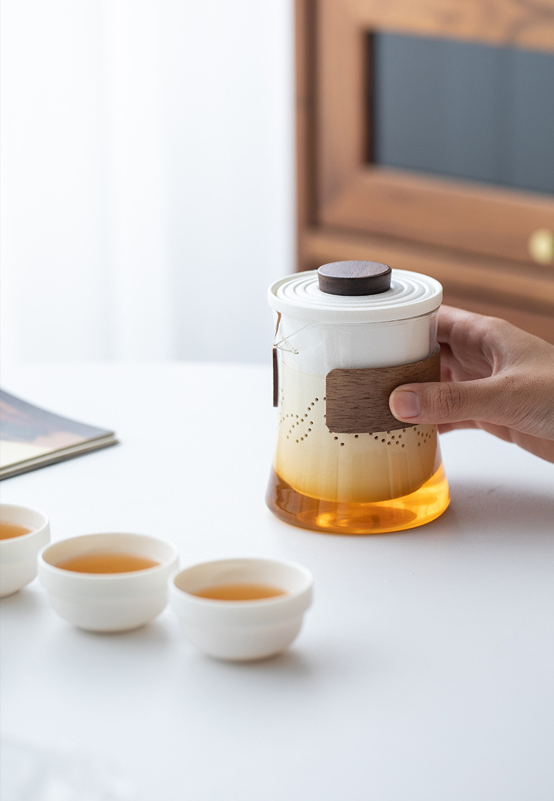 高級セラミック旅行ポータブルティーセット、アウトドアキャンプ、火傷防止ティーポット、1人用飲料、ビジネス記念品、ロゴ入り
