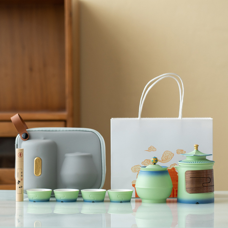 新品汝窑敦煌旅行茶具套装户外便携式快客杯公司银行文创商务礼品