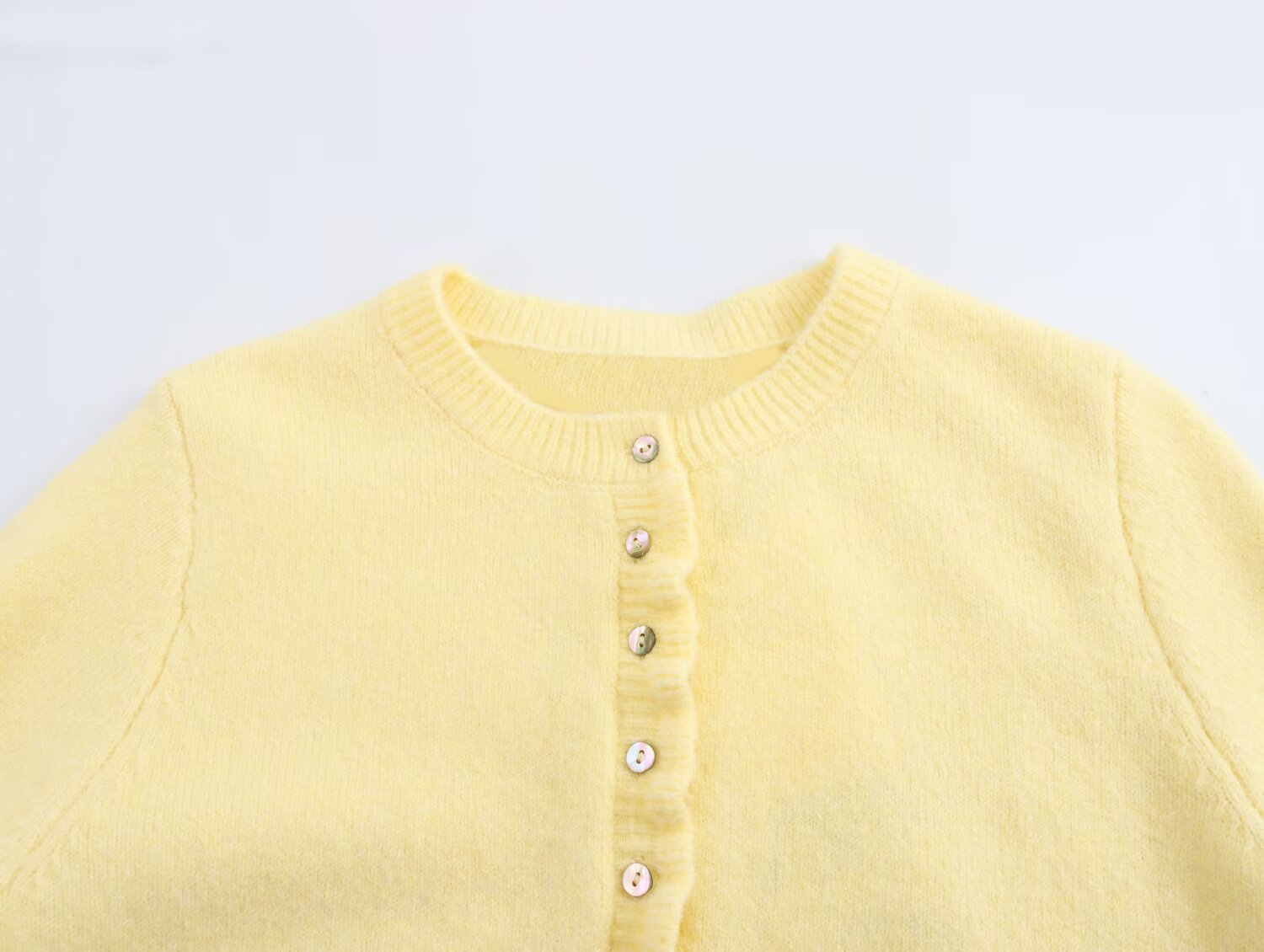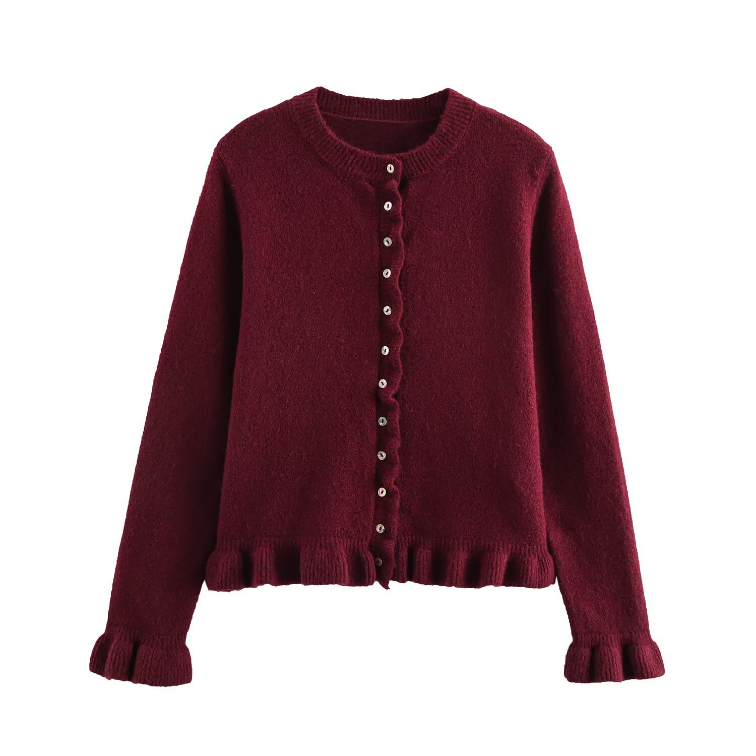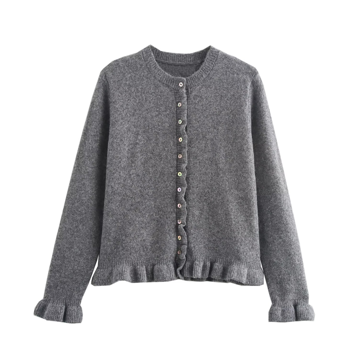外国貿易卸売り欧米風2025丸首の木の耳元に重ねてカーディガンのニットの上着を飾ります。