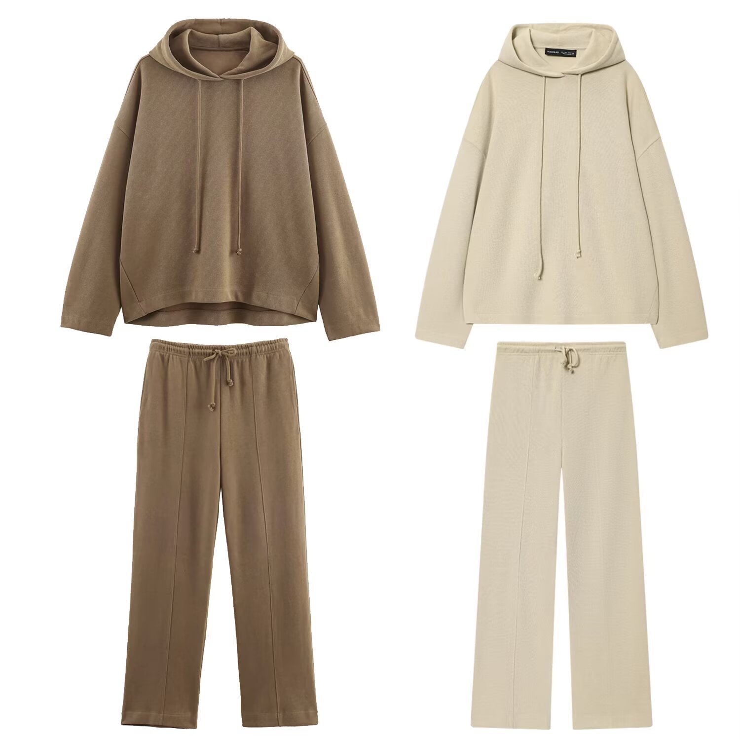 跨境外贸女装2025秋季欧美风连帽长袖卫衣+卫裤套装女E490301/2