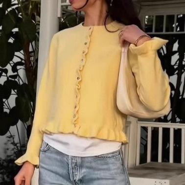 ZARO 自制 欧美风复古休闲时尚气质圆领花边饰叠层装饰针织外套