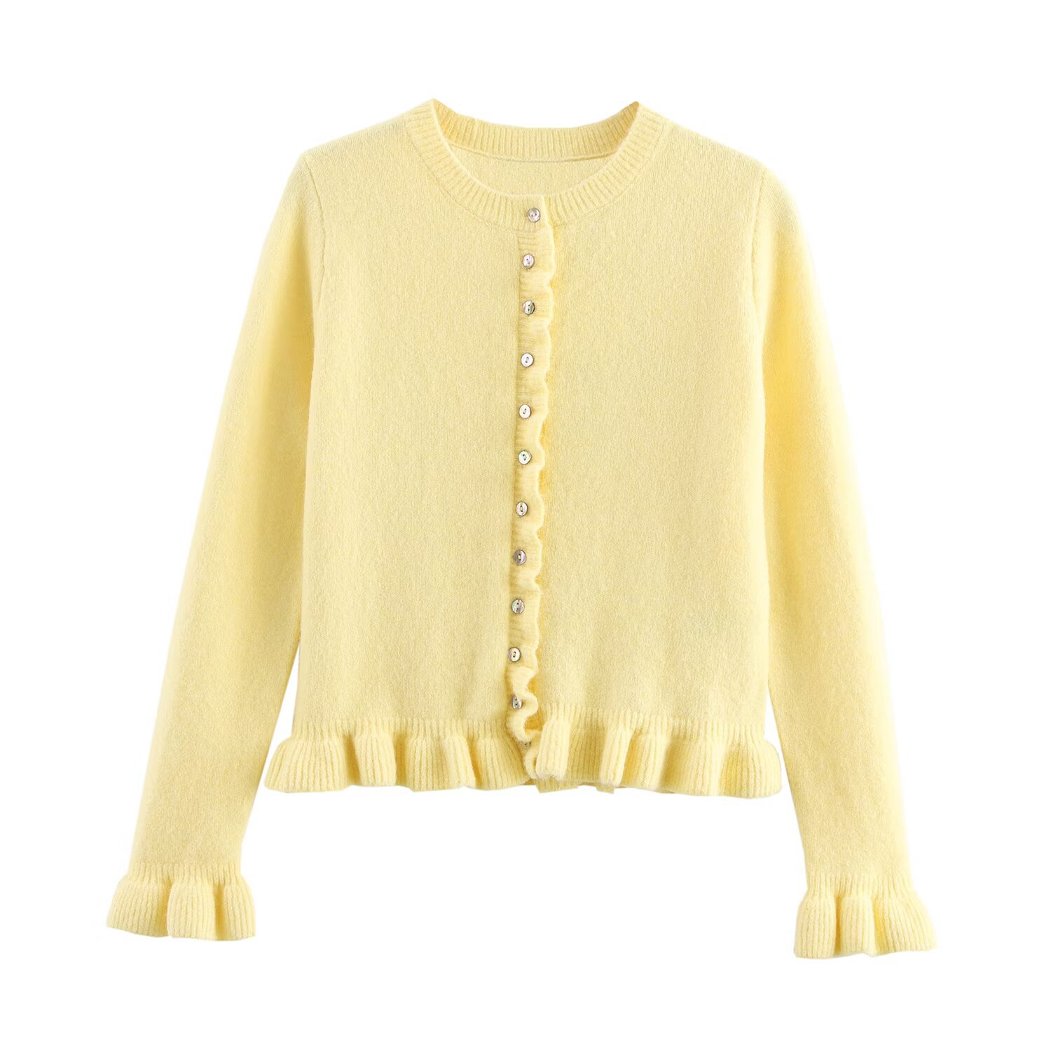 2025春秋季新款法式时尚气质叠层装饰减龄花边欧美针织开衫外套女