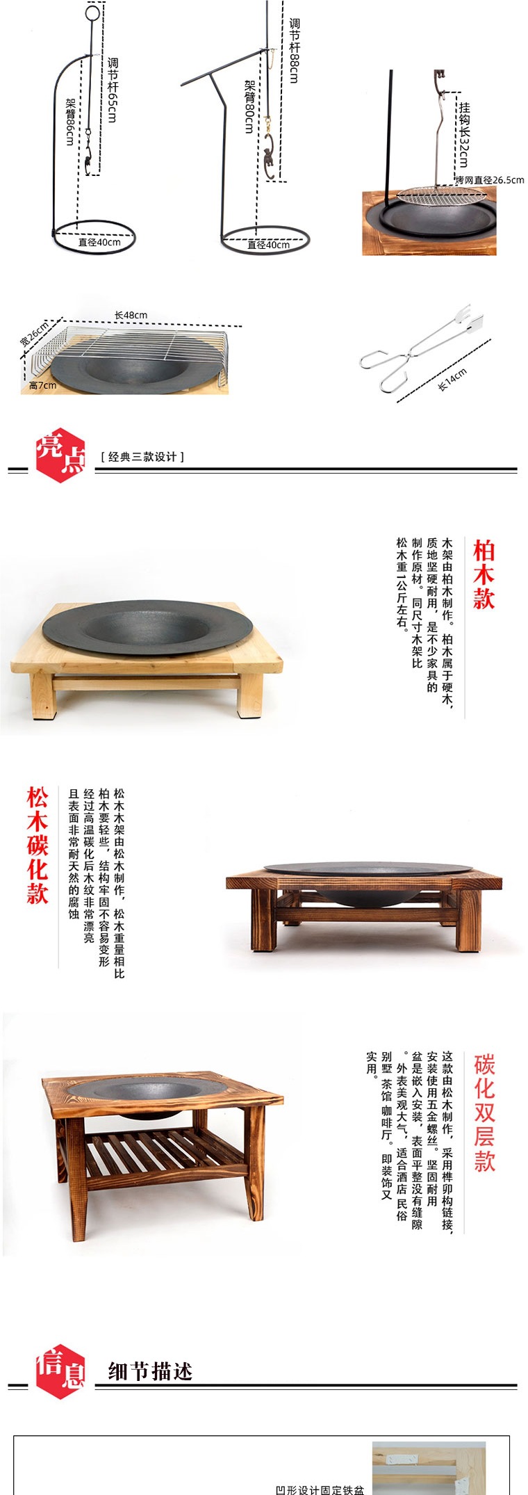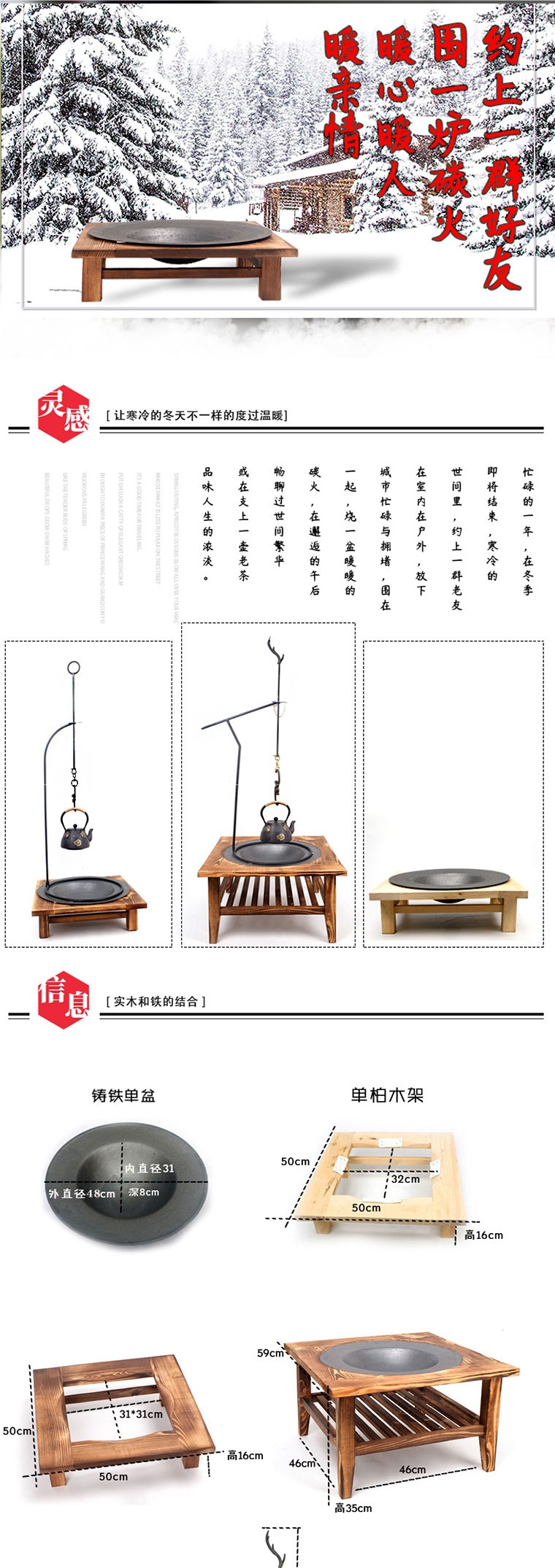 木炭农村老式火盆烤火取暖炉子烧烤炉户外室内烤架铸铁碳火煮茶炉