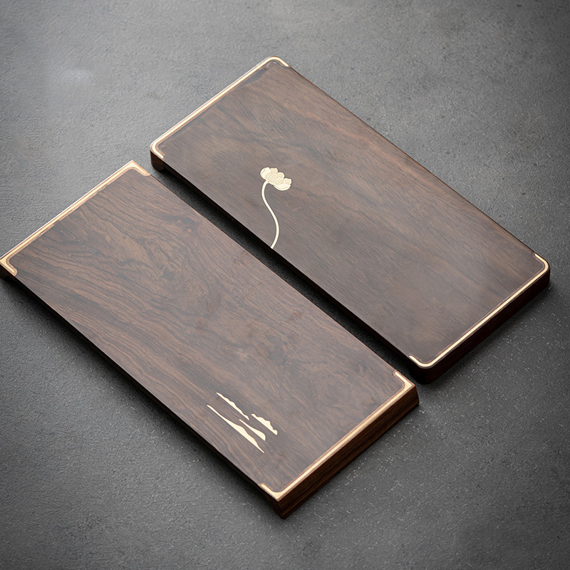 銅象嵌入り家庭用一枚板胡桃無垢材小茶台、レトロな乾式茶器、茶托、急須置き、茶道具、茶道