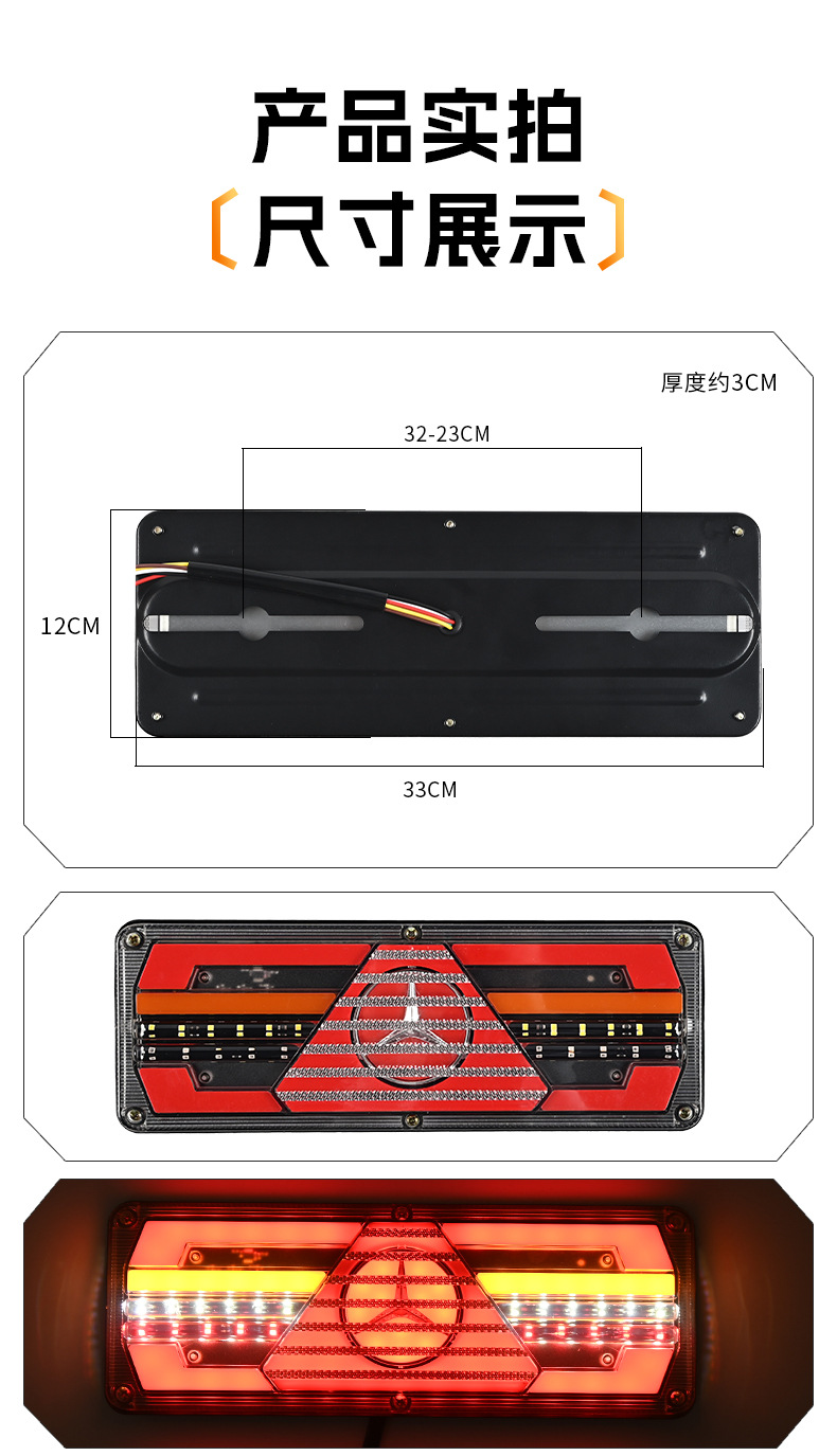 国境を越えた現貨供給 トラックテールランプ 12V24V汎用 ブレーキ、走行、後退、方向指示多機能リアテールランプ