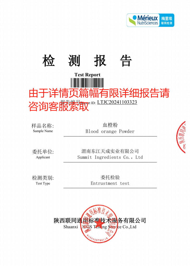 源工場の現物で血橙粉を販売すると、第三者の検査報告書を提供して、血橙汁粉を取ることができる