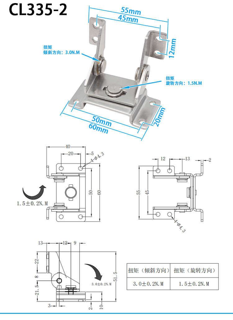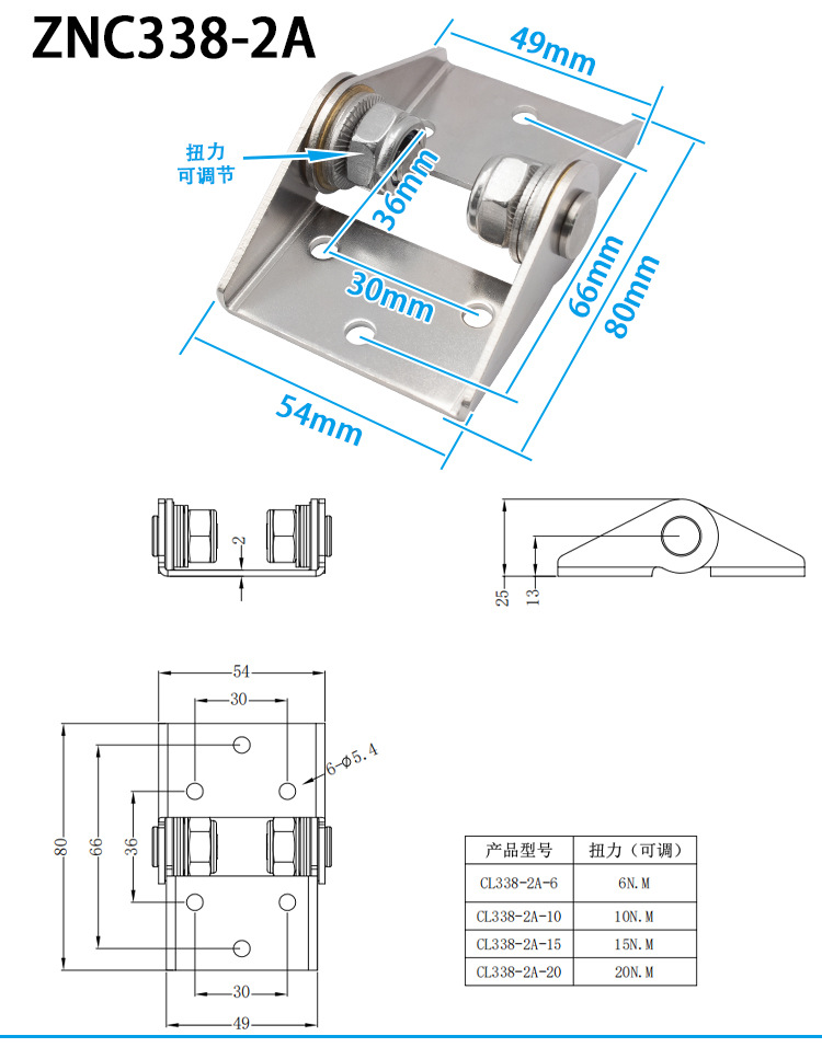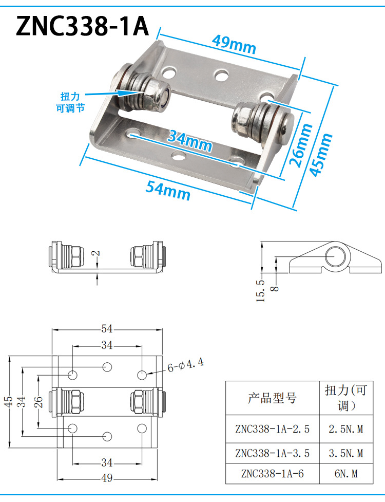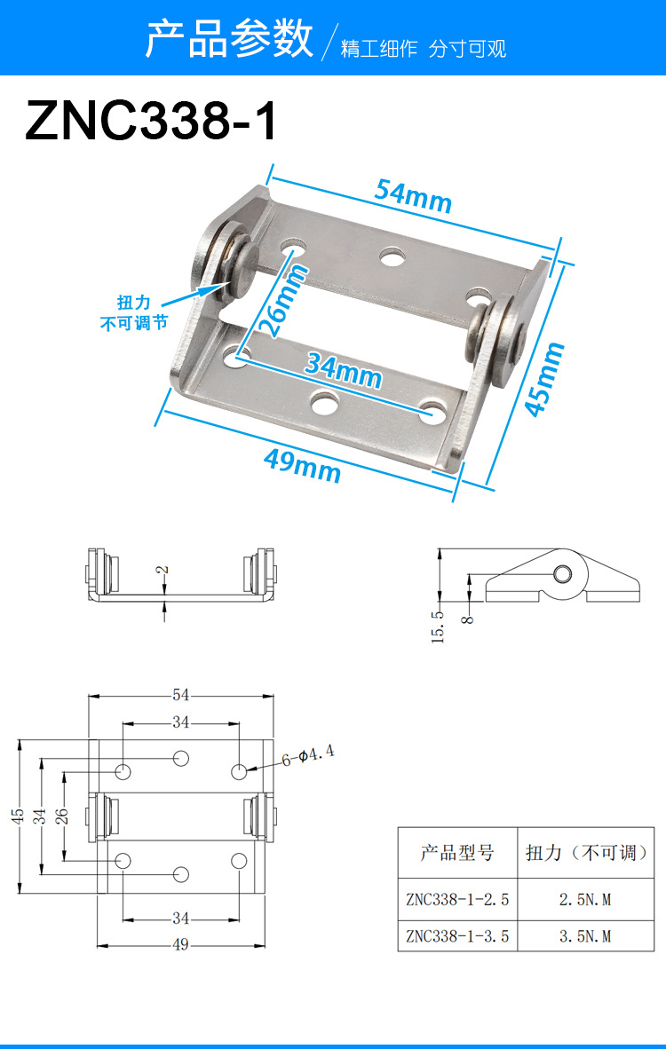 阻尼不锈钢合页可调节扭力配电箱机械设备柜门任意停转轴扭矩铰链
