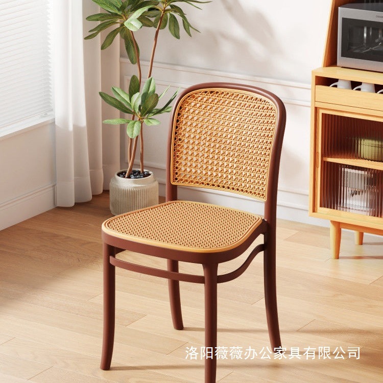 家庭用ダイニングチェアテーブルと椅子レトロプラスチック籐編み椅子籐中古籐椅子背もたれ椅子通気性アウトドアスツール