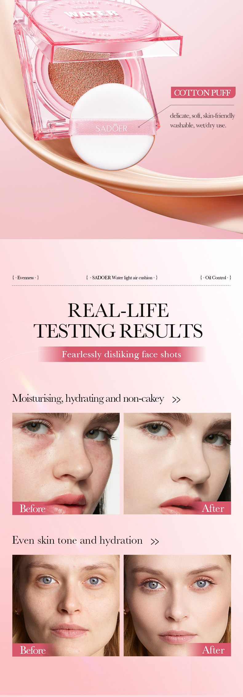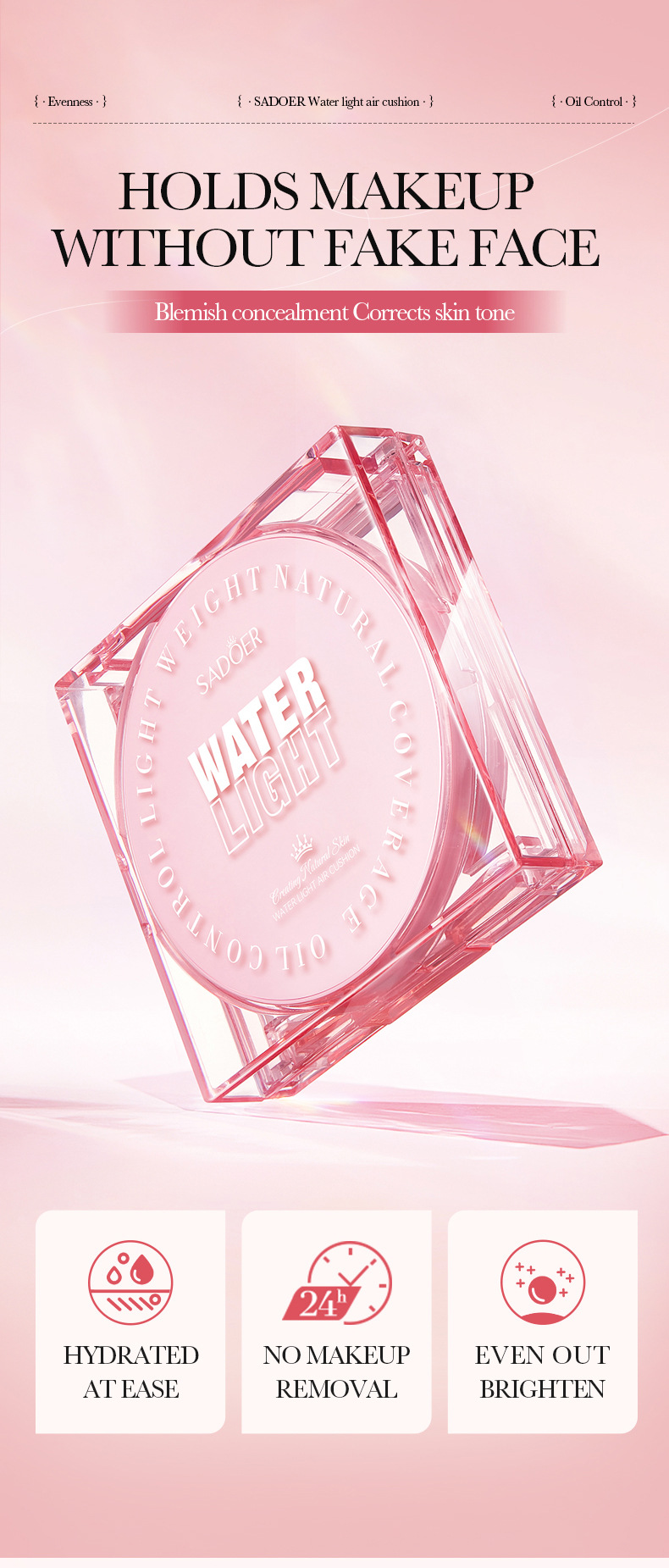 全英語SADOER水光クッションカバーの顔を整え、肌の色を明るくします。
