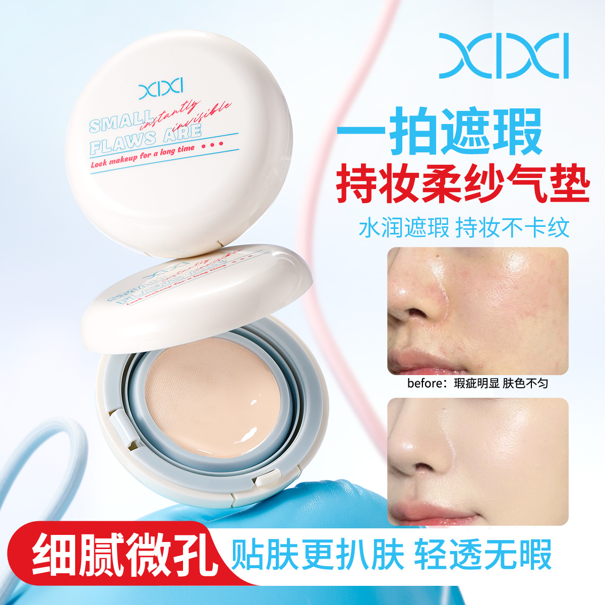 靓妮诗绒雾遮瑕气垫霜水润轻薄持久防水遮瑕自然服帖不脱妆气垫霜
