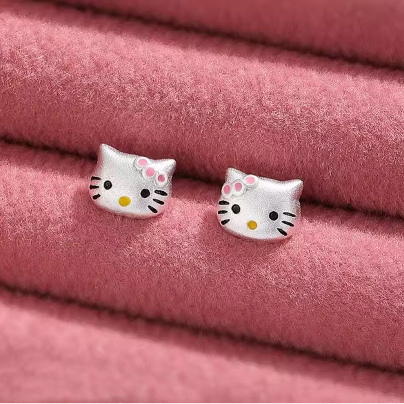 新款迷你小巧KT小猫咪耳钉女磨砂可爱感仙女风个性独特耳饰批发