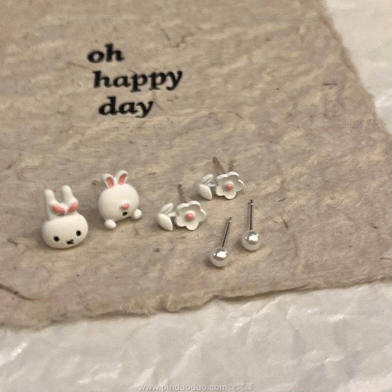 ニャンニャン小魚 ~ 百合個性かわいい甘い学生925銀針ピアス6点セット合集夏新作