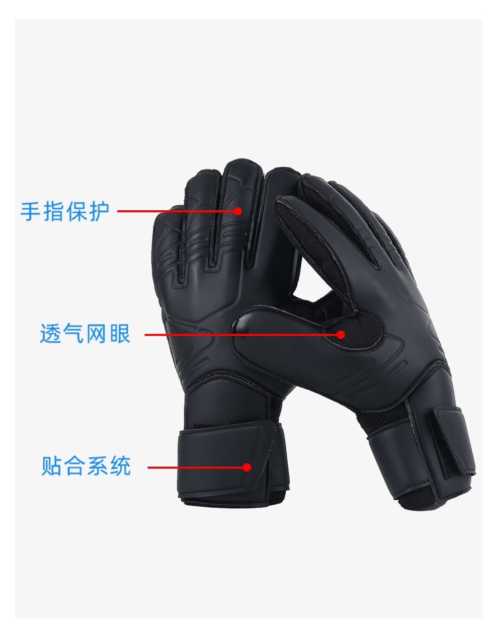 国境を越えた黒色ゴールキーパー手袋指付き児童成人手袋サッカー試合手袋ラテックス門将手袋