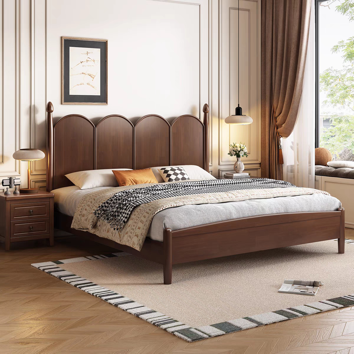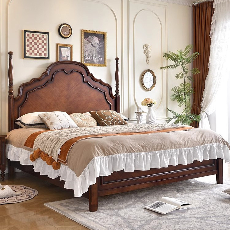 中世スタイルの無垢材ベッド 1.8m ダブルベッド マスターベッドルーム ビッグベッド シンプル アメリカンスタイル 1.5m 小型アパートメント B&B 収納ベッド