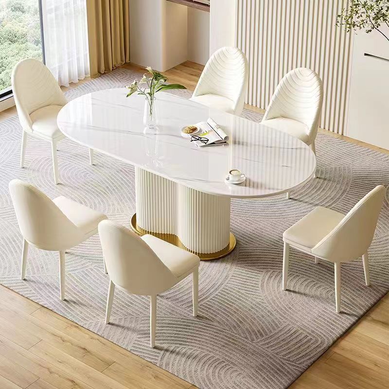クリーム風岩板食卓現代シンプル家庭用経済創意白いテーブルと椅子一体楕円小戸型食卓
