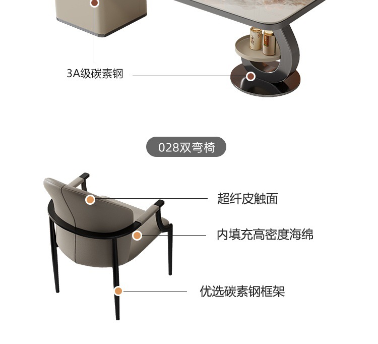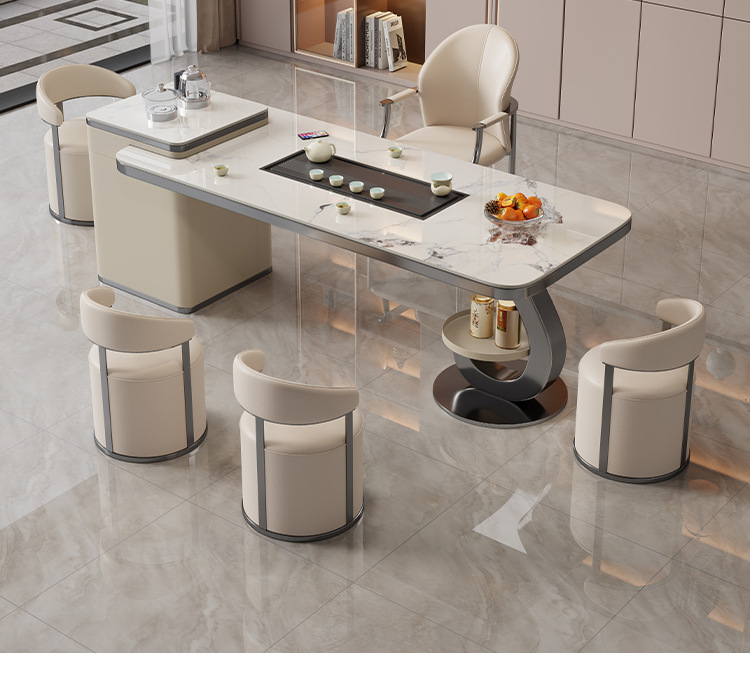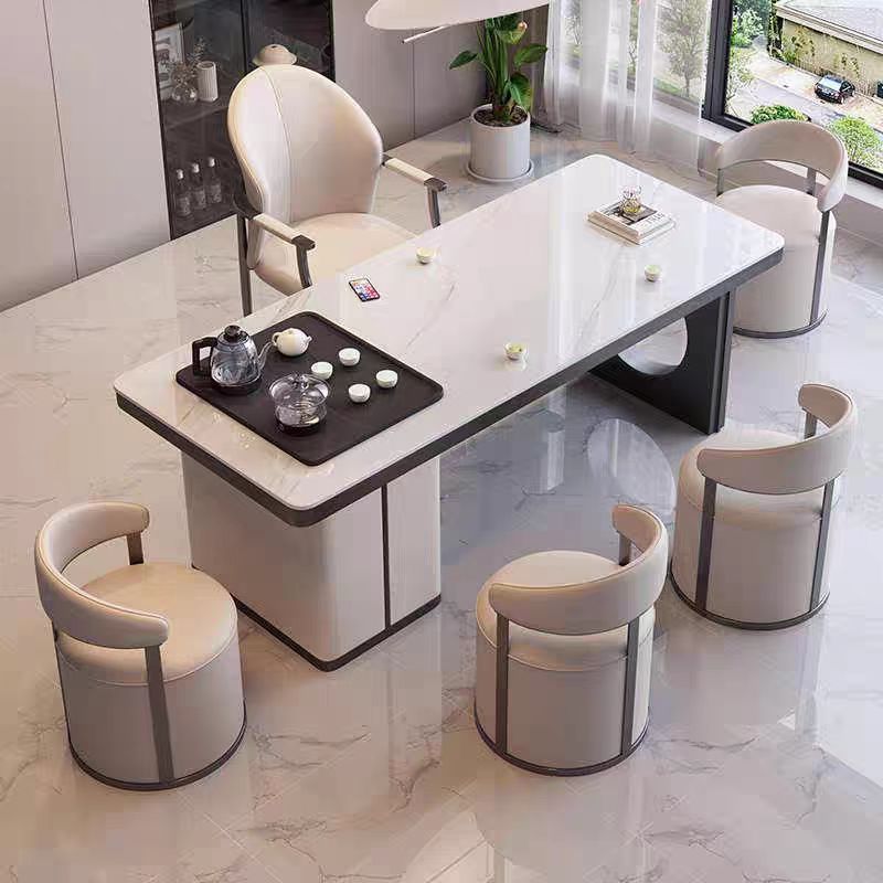 現代的な極めてシンプルで贅沢な岩板茶台机客間オフィス接待大板茶テーブルと椅子の組み合わせ高級感茶台