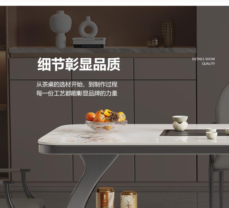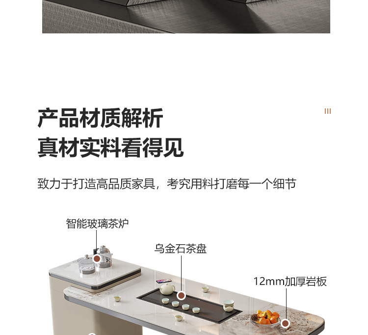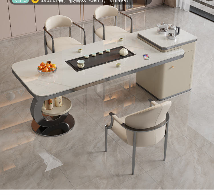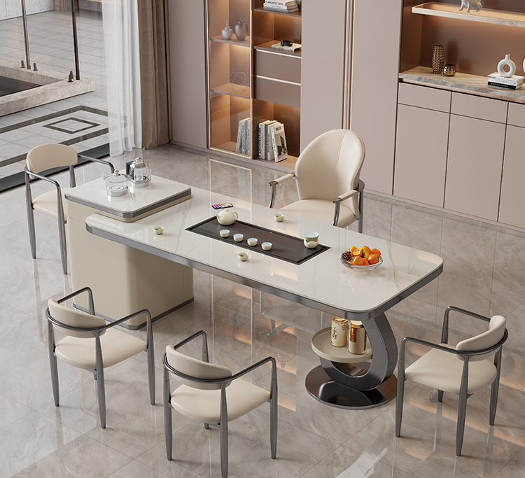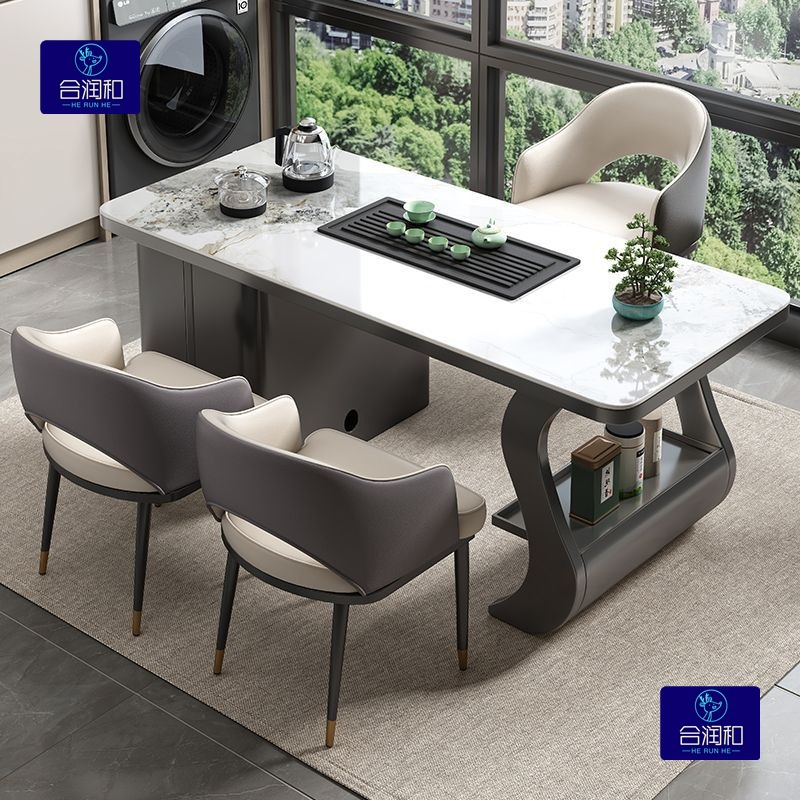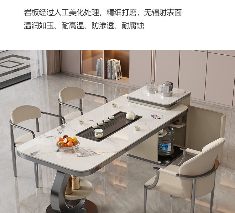 轻奢简约家用办公多功能意式茶台 岩板泡茶茶桌一体一整套组合