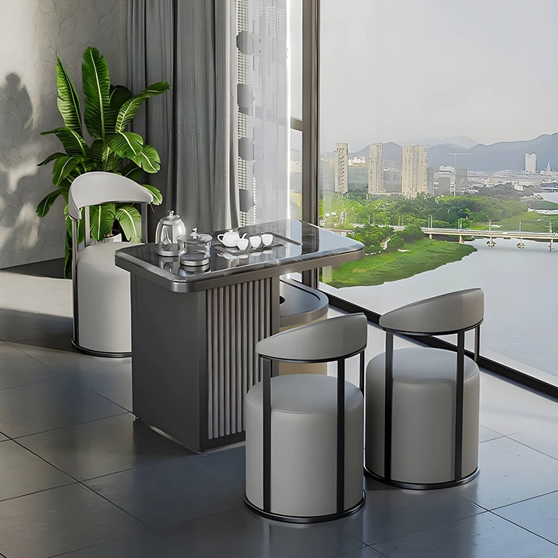 岩板のベランダのお茶と椅子の組み合わせは現代的で簡単です。オフィスでお茶を入れます。