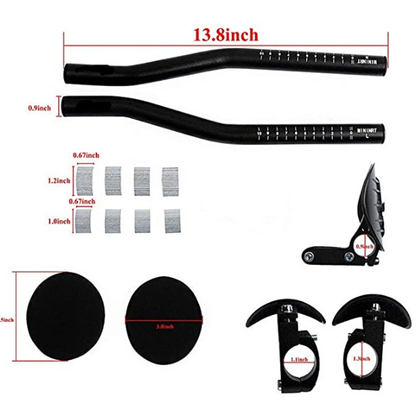 铝合金材料重量轻,分体式设计,适合中间有10CM直段的车把,TT把单边夹环宽度1.8CM,全打扁的车把(变异)不能用。多角度调长度可调节.护肘部分弹性好,防滑,可拆下清洗
