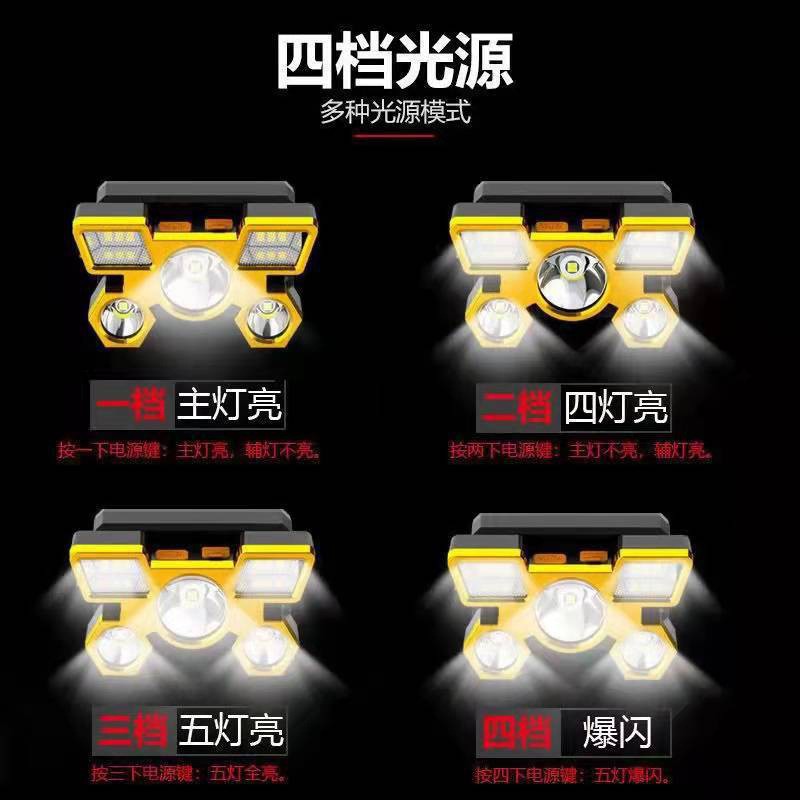 新しい強力なヘッドライト LED 5 ヘッド航空機ライト USB 充電式ヘッドマウント懐中電灯屋外マイナーズランプ集魚灯