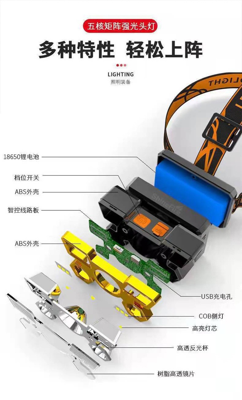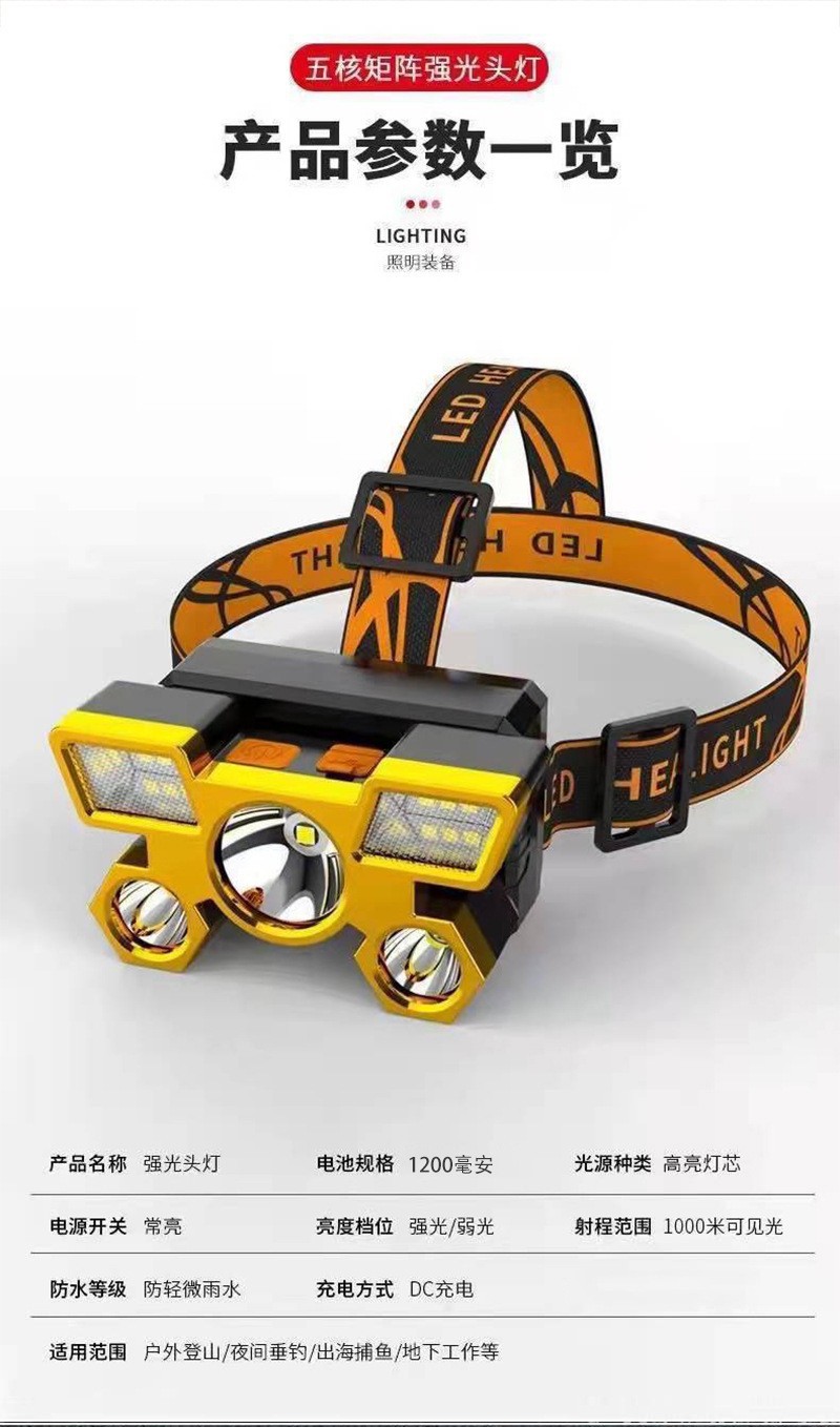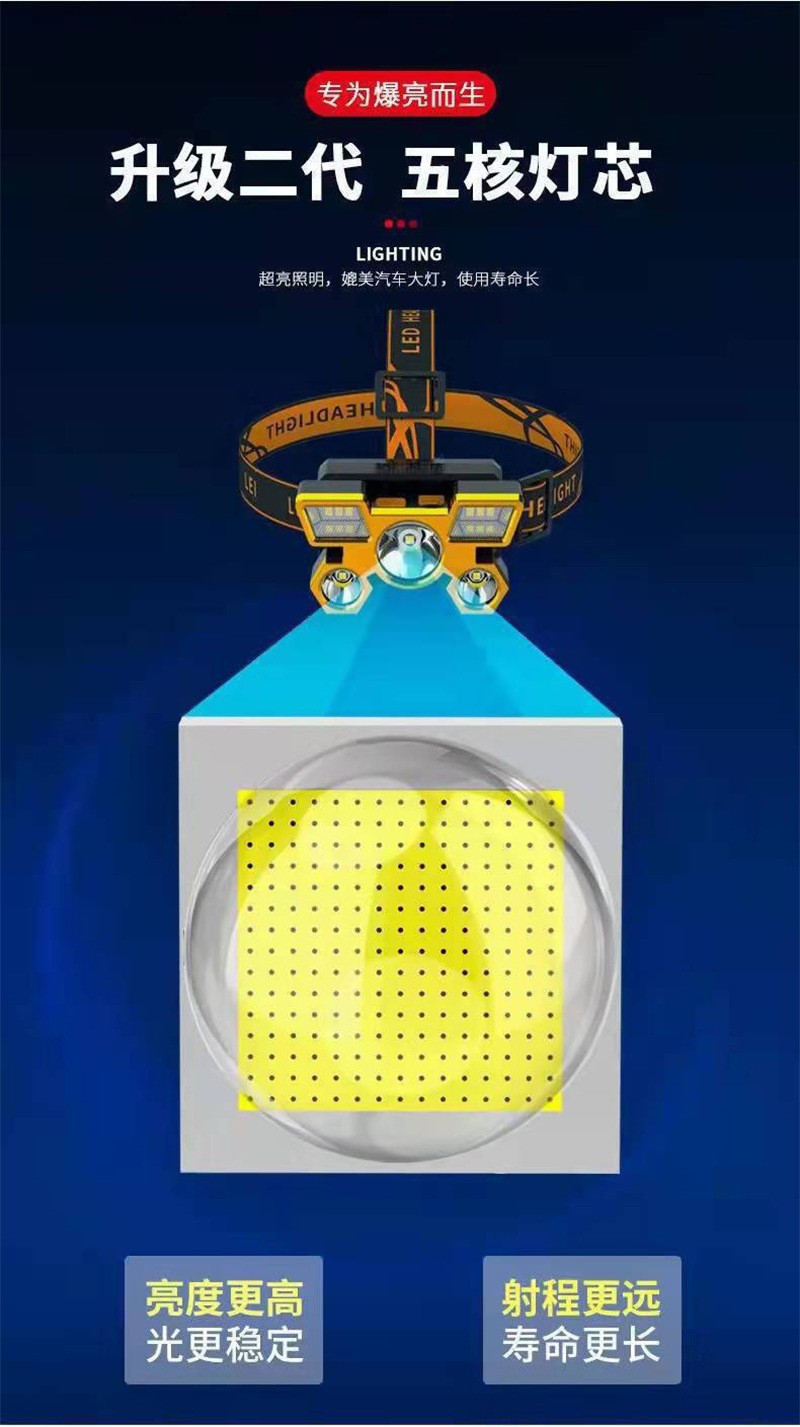跨境野外强光头灯长续航锂电头戴式强光矿灯高流明户外登山赶海灯