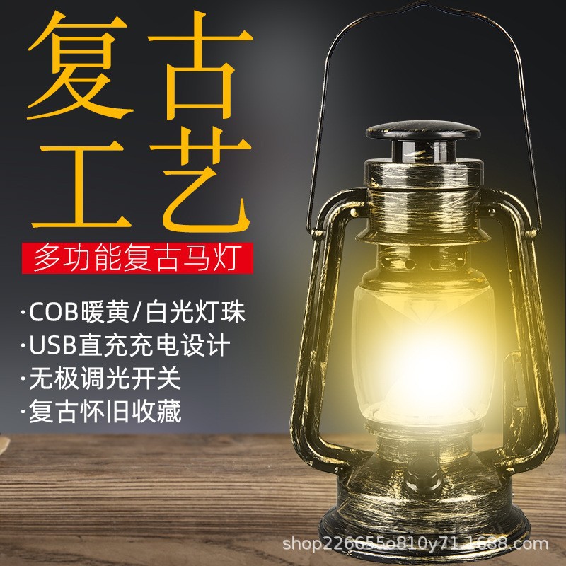 工厂批发户外露营老式复古充电马灯照明氛围野营灯手提挂式帐篷灯
