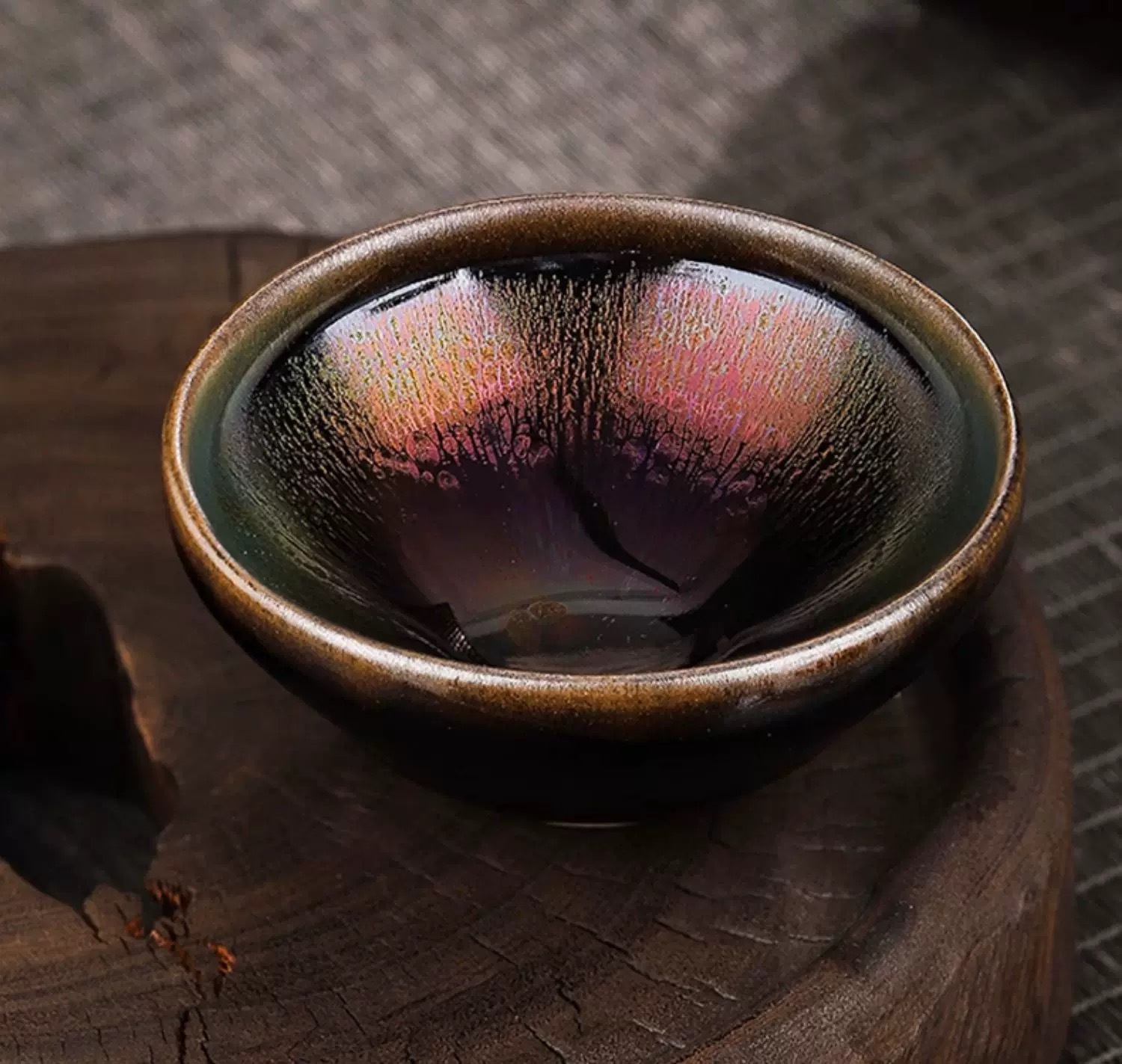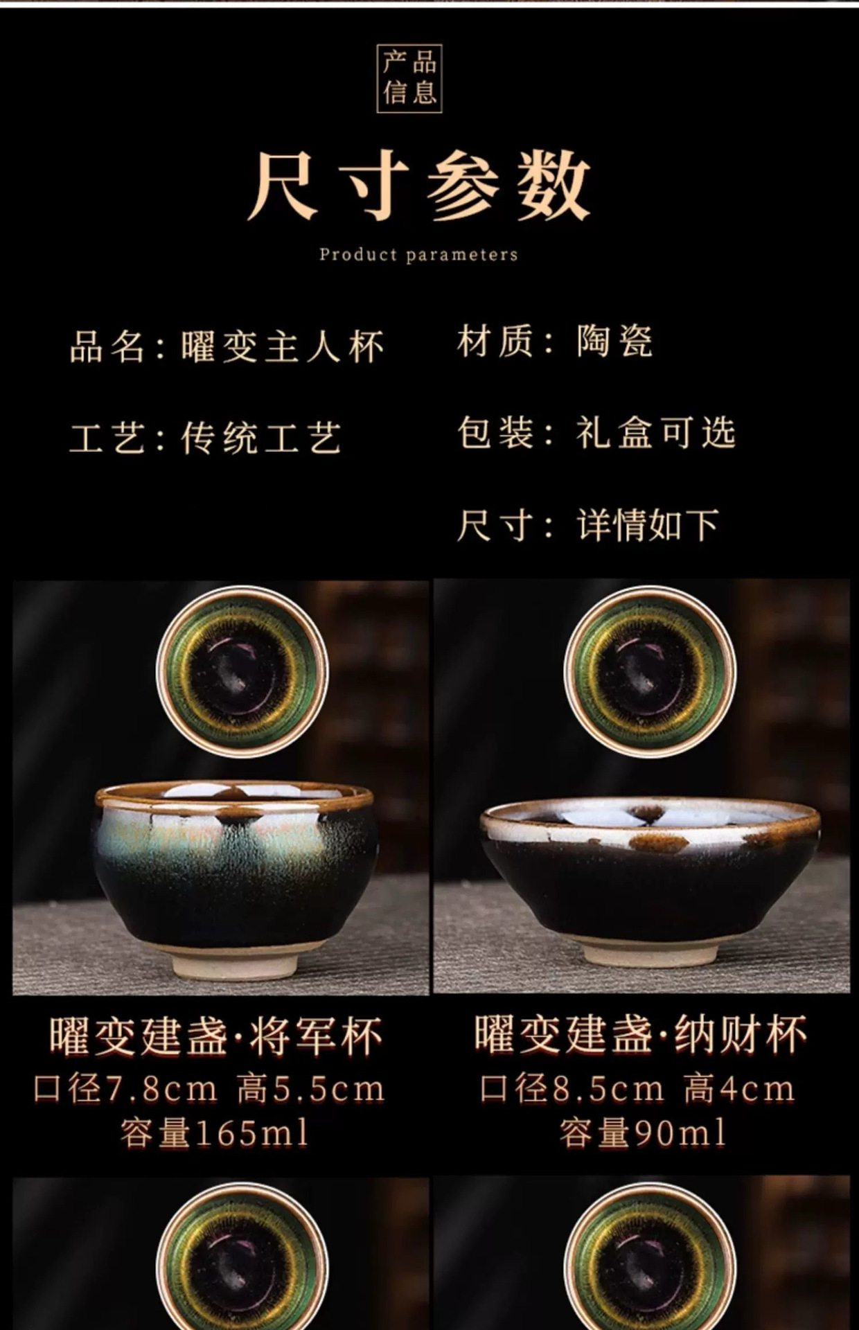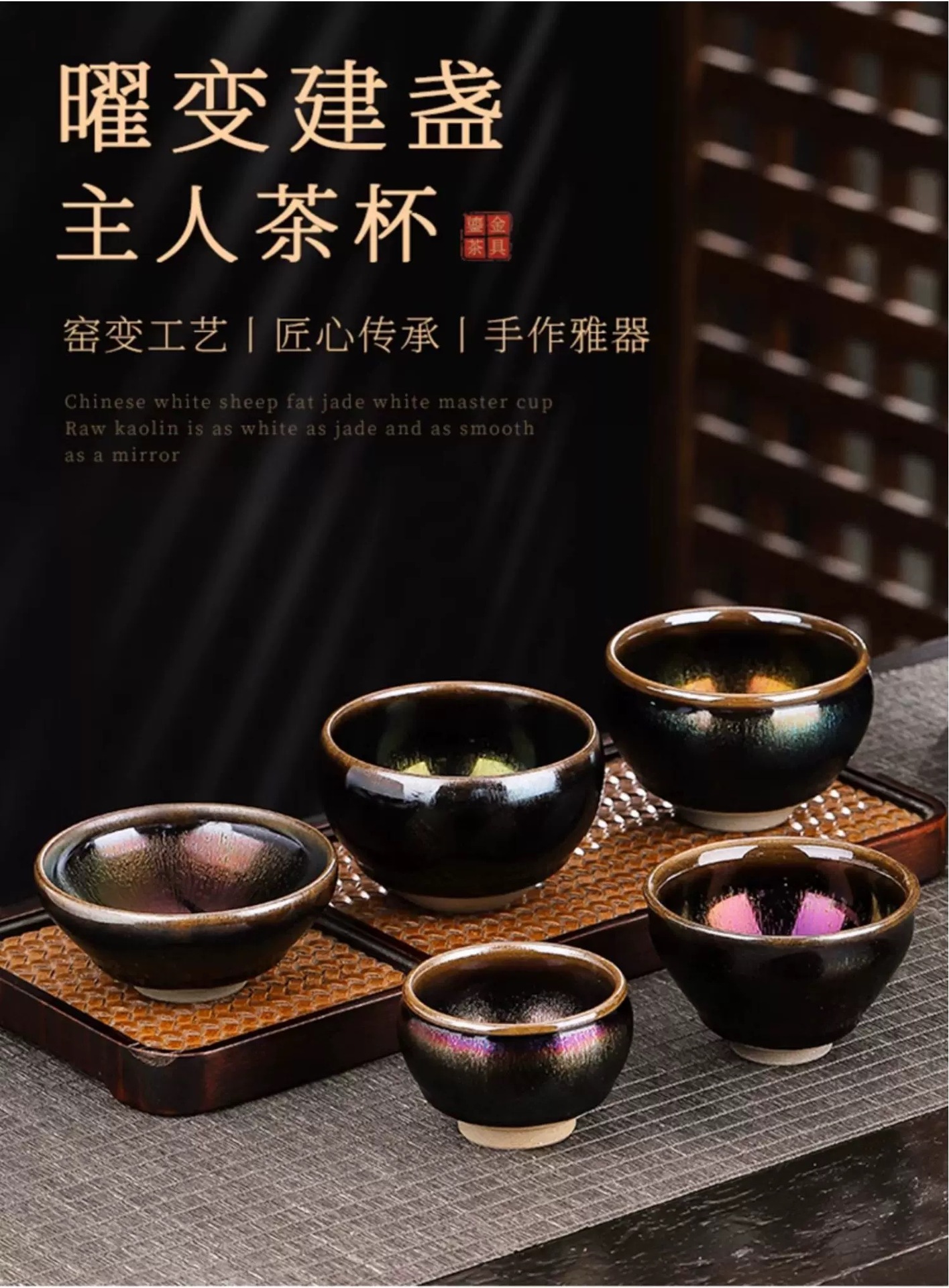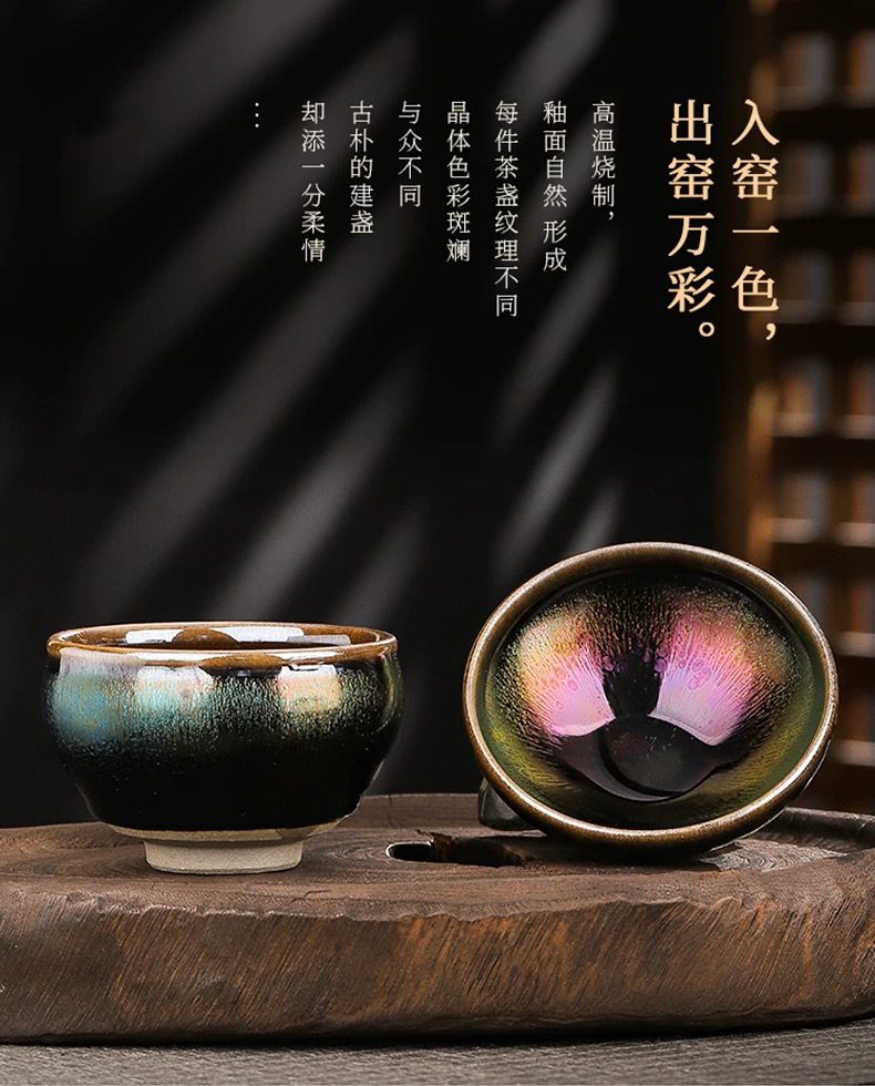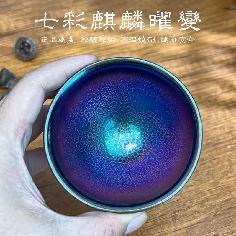 七彩麒麟曜变建盏主人杯大号高端陶瓷茶具开窑茶盏大容量窑变茶杯