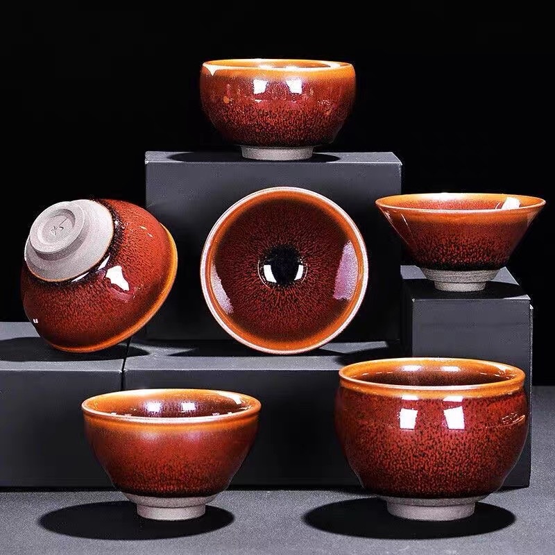 建阳建盏红毫茶杯天目茶盏原矿原釉大号陶瓷铁胎茶具批发窑变瓷器