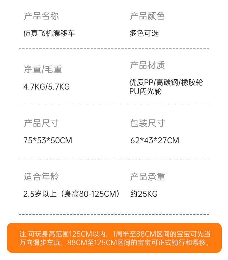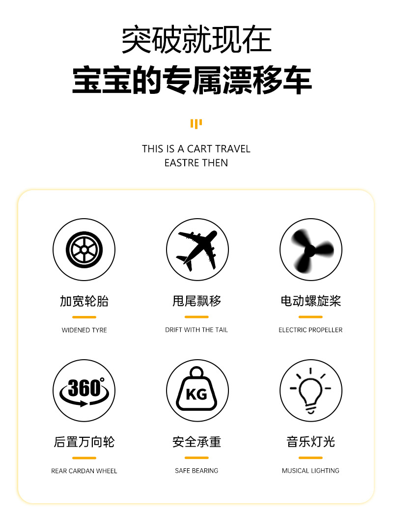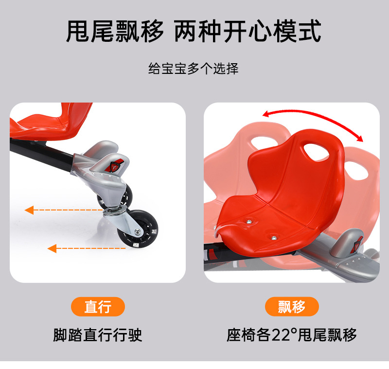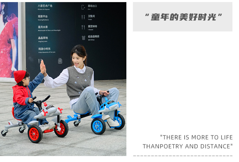 外国貿易サムと同じスタイルの飛行機ペダルカー、子供が座れる四輪車、転倒防止、光る車輪付き