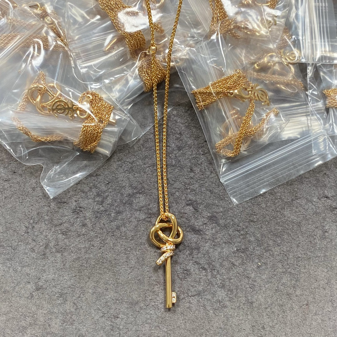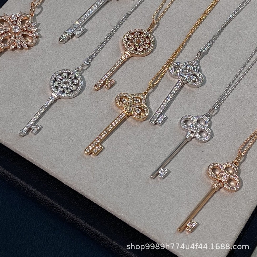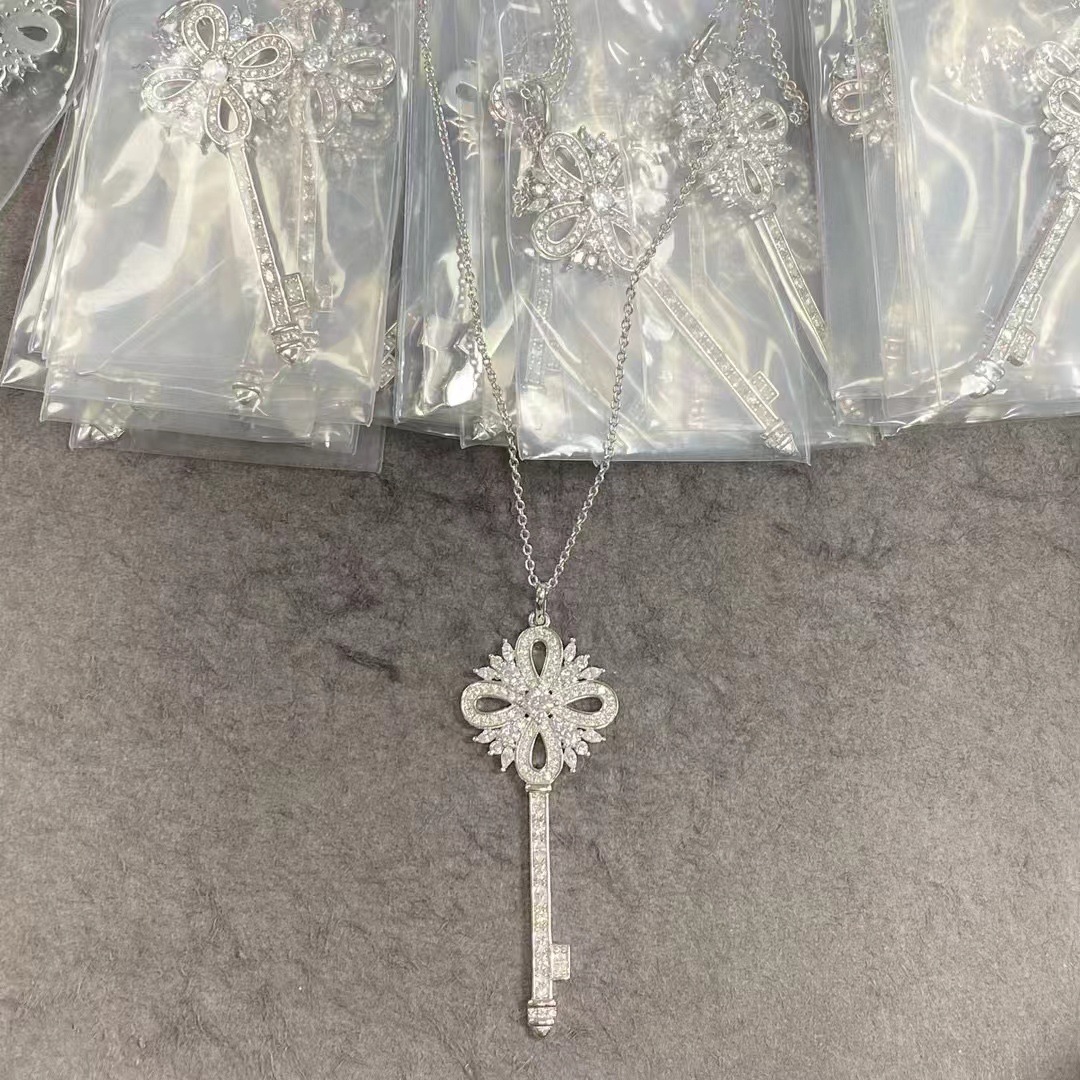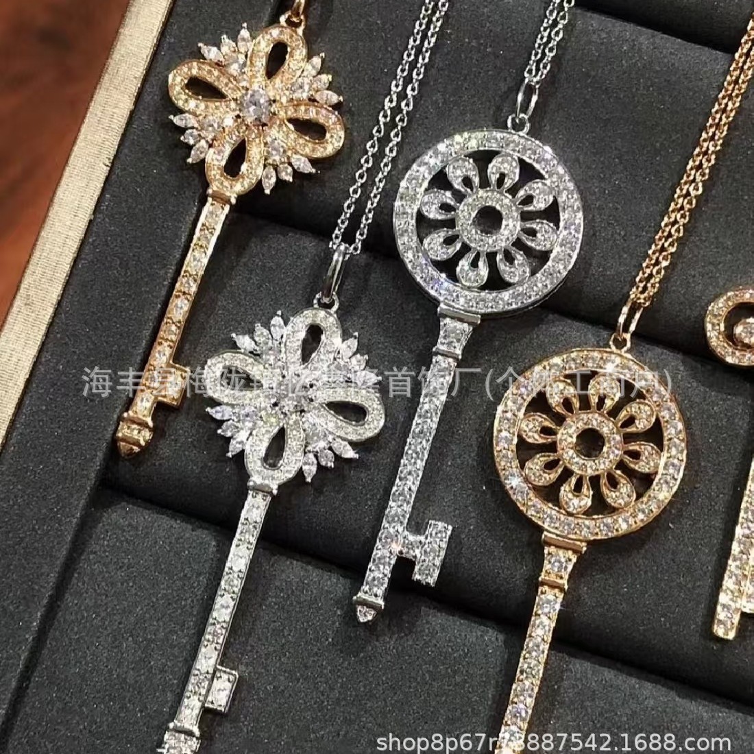 925純銀T家アイリスの鍵ネックレスメッキ18k真金ティ家満ドリル鍵セーターチェーン高バージョン