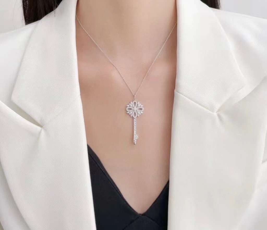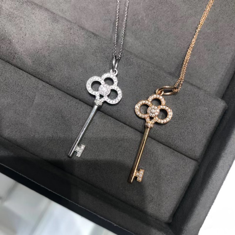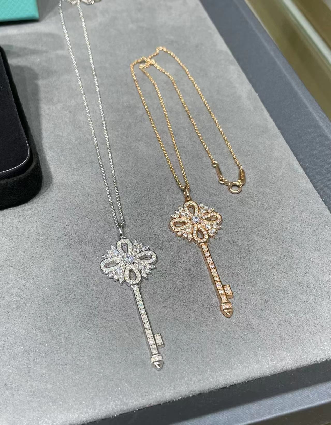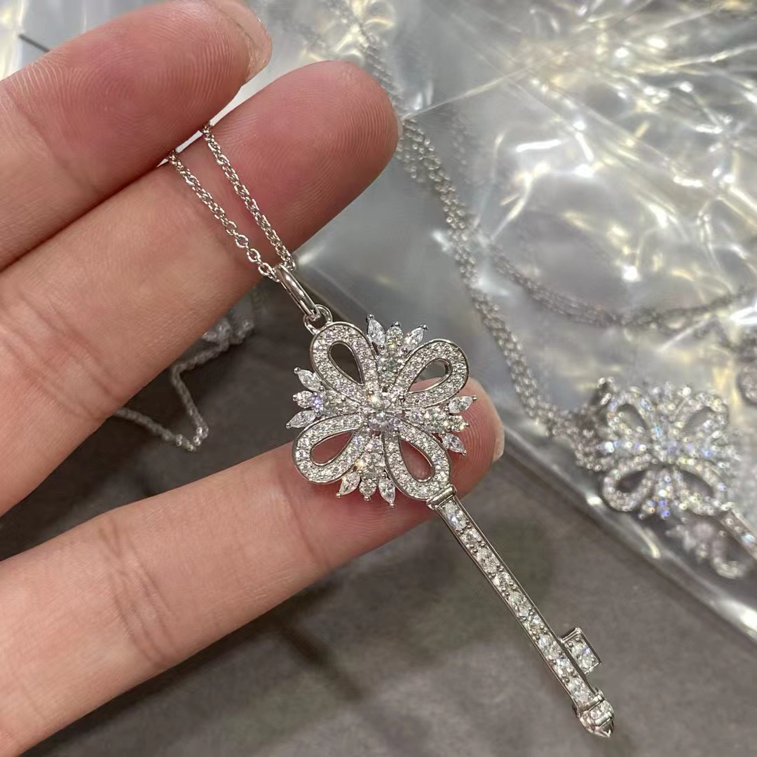 925純銀T家アイリスの鍵ネックレスメッキ18k真金ティ家満ドリル鍵セーターチェーン高バージョン