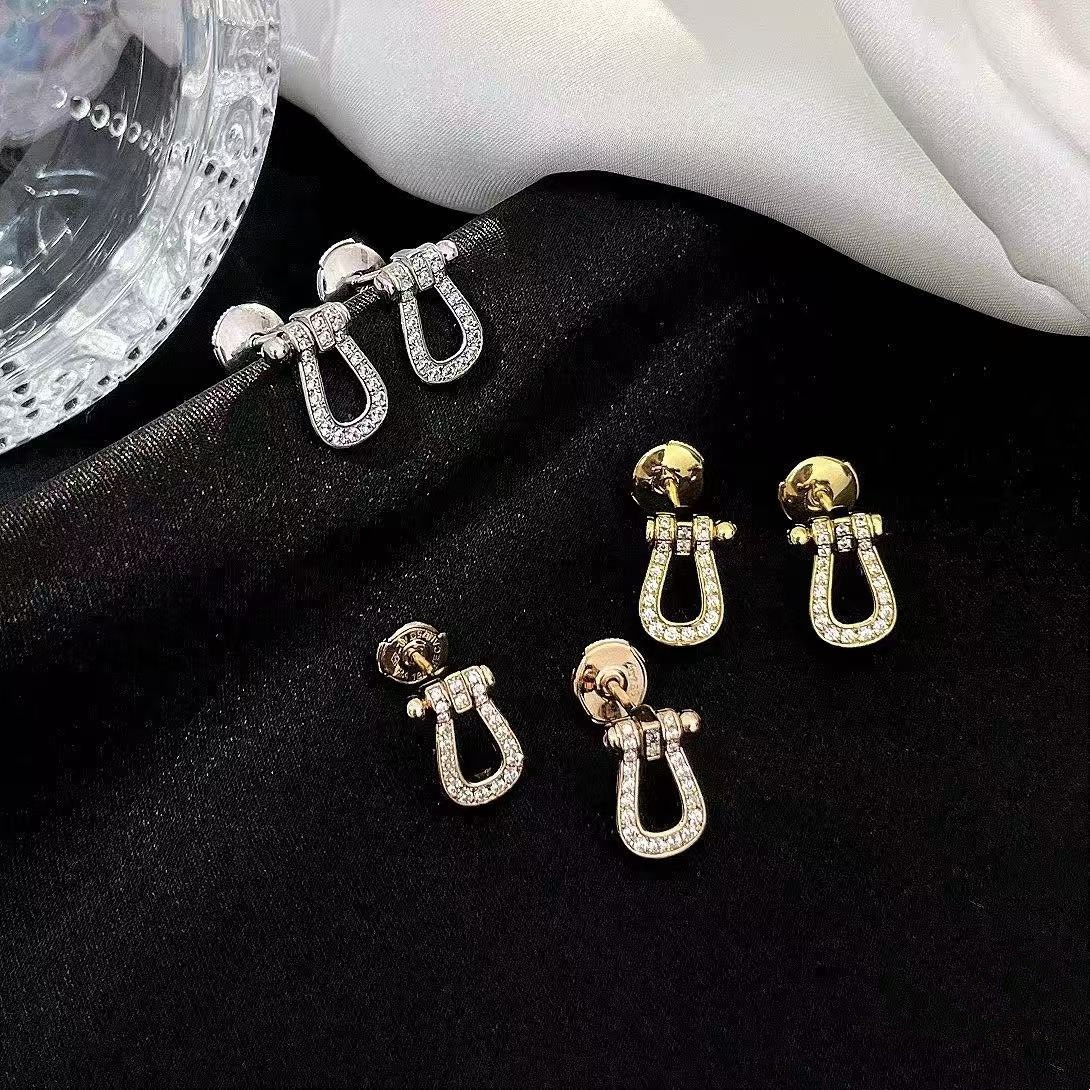 925純銀費雷家馬蹄バックルピアスメッキ18k真金F家満ドリル馬蹄イヤリングセイコー高バージョン