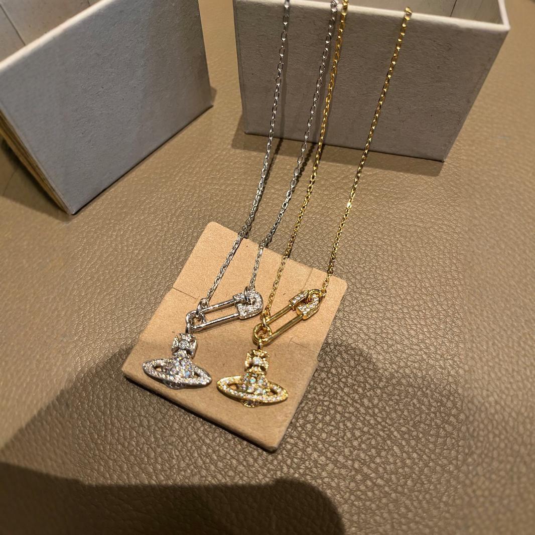 925純銀製西太后風ピン、フルダイヤモンドの土星ネックレス、NANAと同じスタイルの惑星ペーパークリップ鎖骨チェーン、多用途