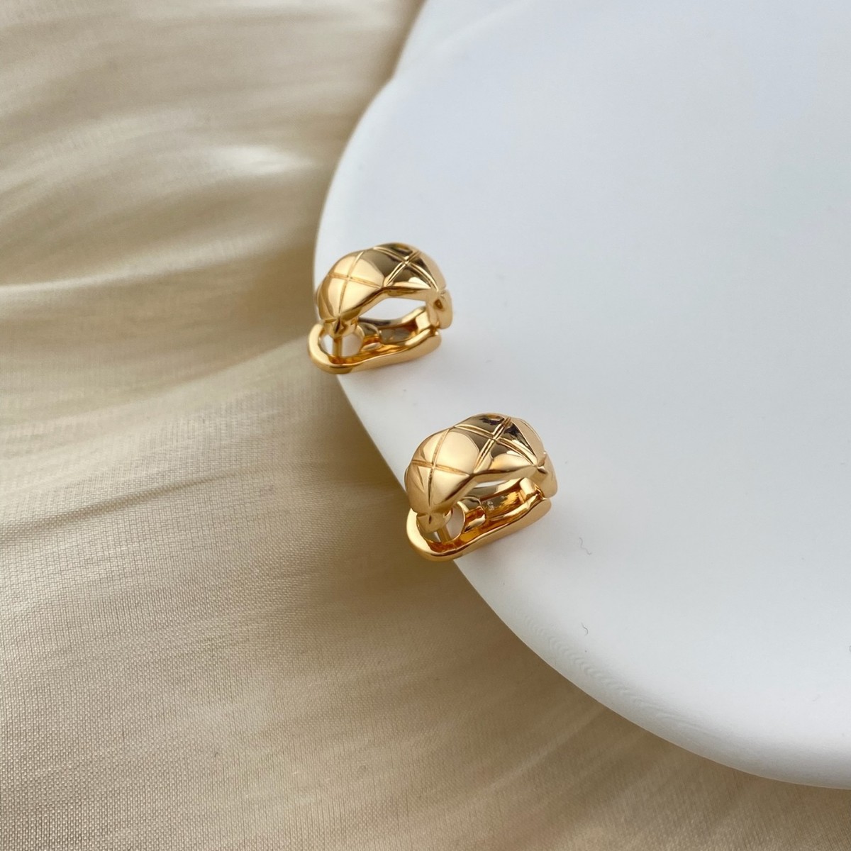 925純銀C家小香coco菱格ピアス女性メッキ18kバラ金菱格耳拍セイコー高バージョン