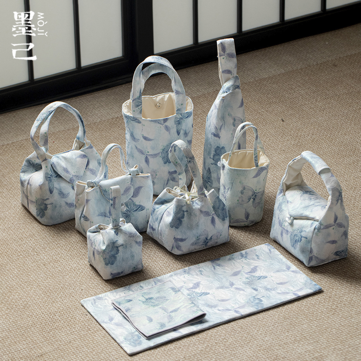 墨己手工布艺青蓝蝶梦茶道配件合集蓝色茶席茶巾茶事包便携收纳包