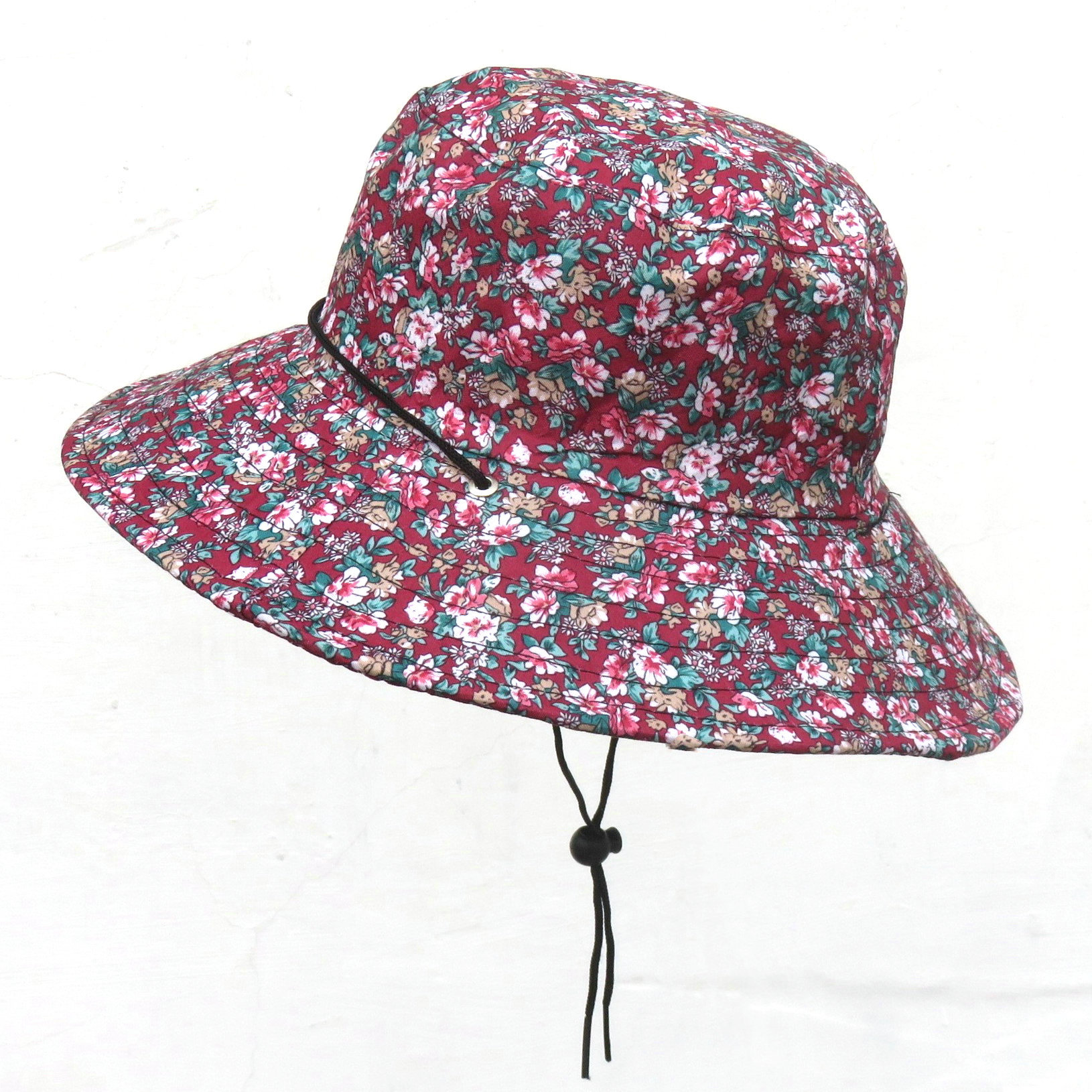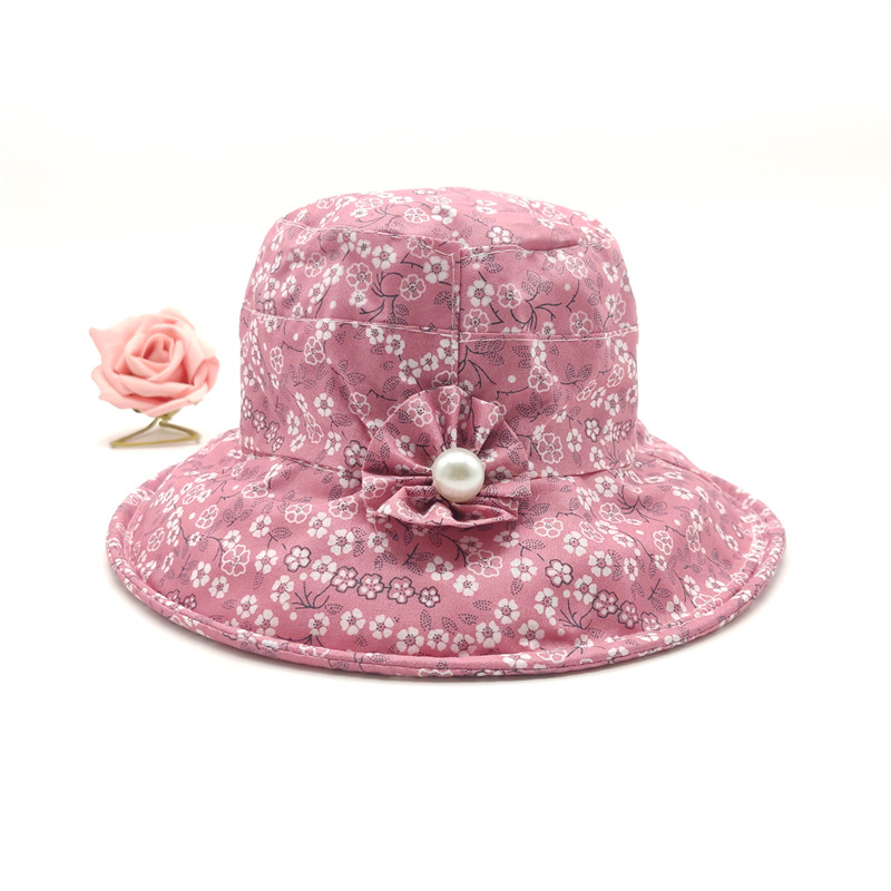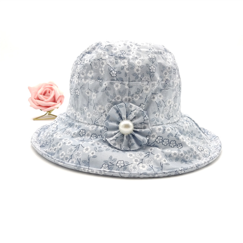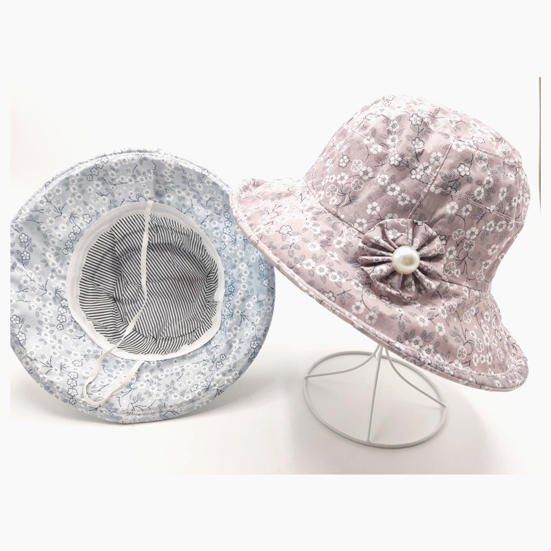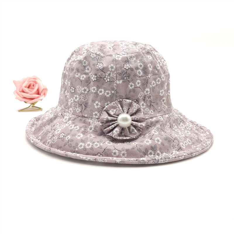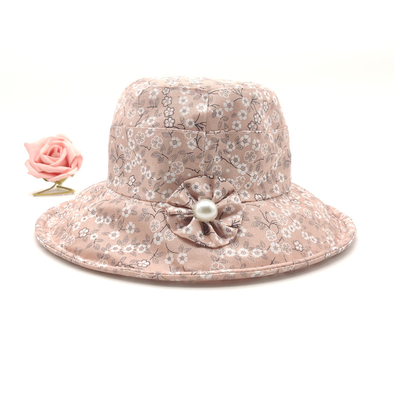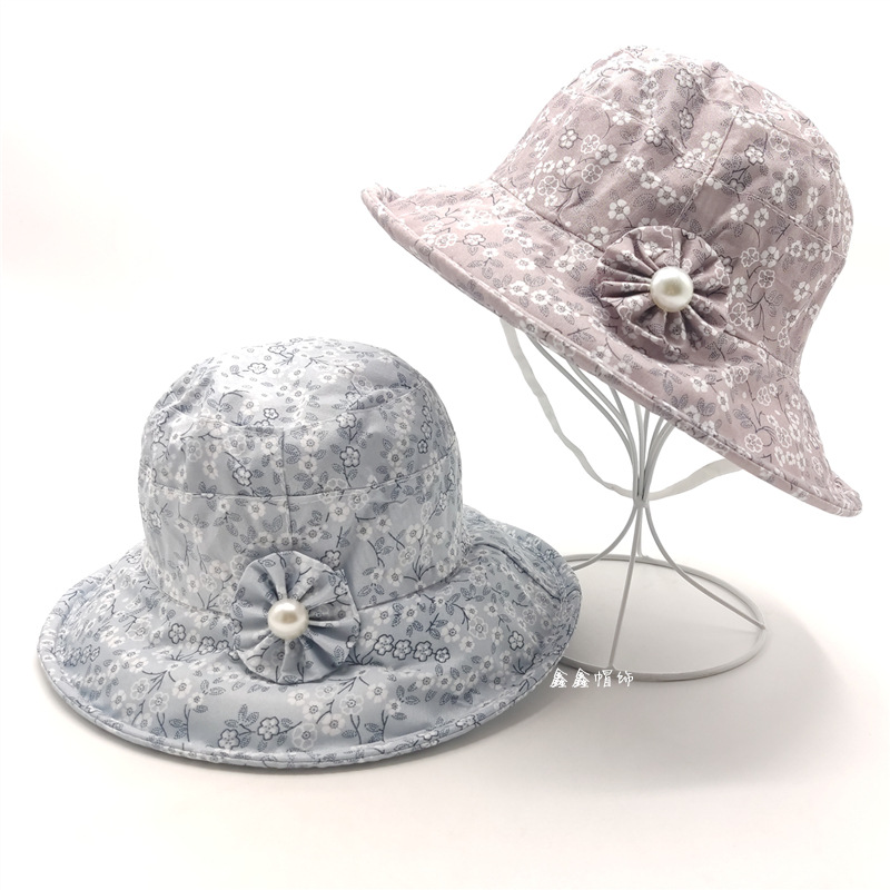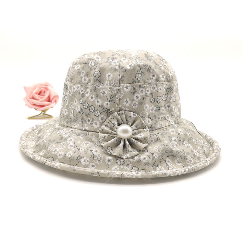 中高年春秋帽日焼け止め紫外線防止帽小花布帽子両面折り畳み可能老婦人帽子