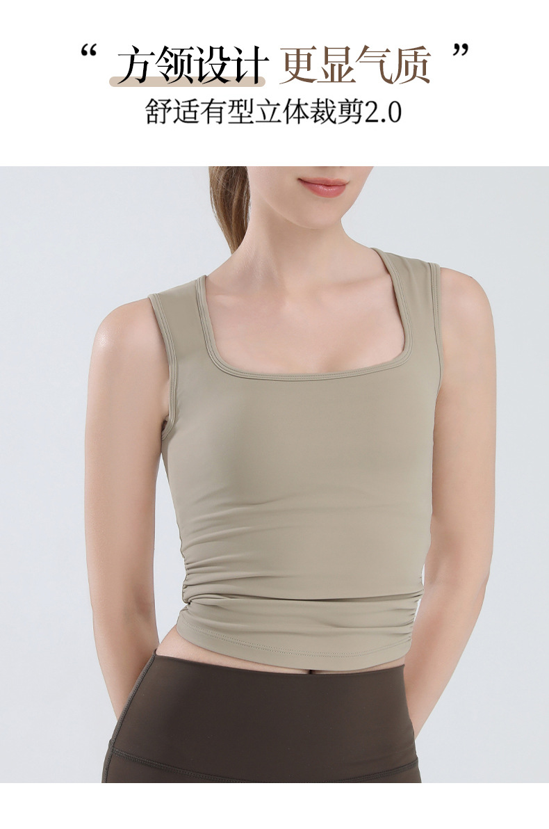无缝瑜伽背心上衣女运动跑步速干健身服带胸垫罗纹背心运动上衣
