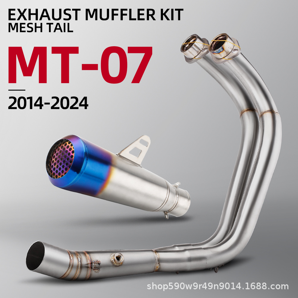 オートバイ改造MT-07前段SCステンレスメッシュカバー排気管セット直筒大排気量煙突