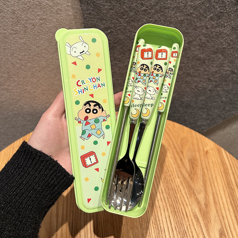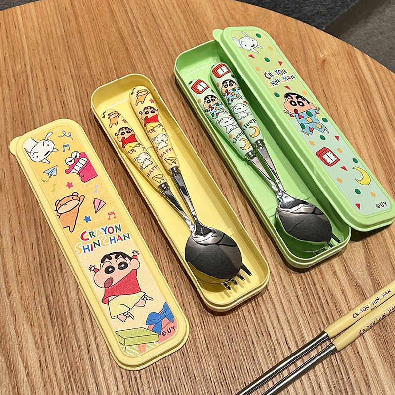 クレヨンしんちゃん正規版304ステンレススプーンフォーク箸かわいい寮家庭用携帯食器箱3点セット