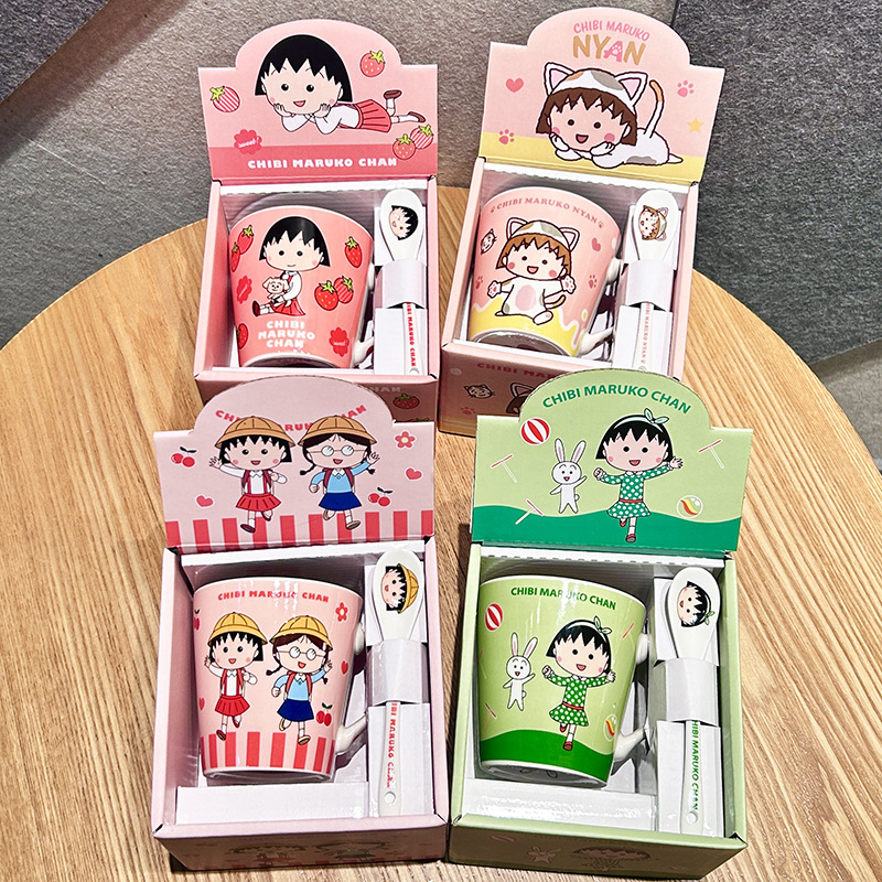 ちびまる子ちゃんカップセラミックマグカップギフトボックス付きスプーンかわいい家庭用寮水カップ誕生日プレゼント