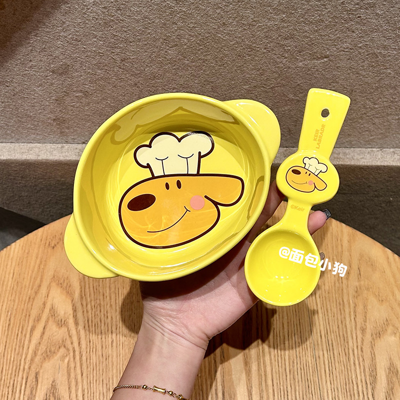 パン子犬セラミック二耳茶碗スプーンかわいい漫画家庭用寮朝食デザート食器セット