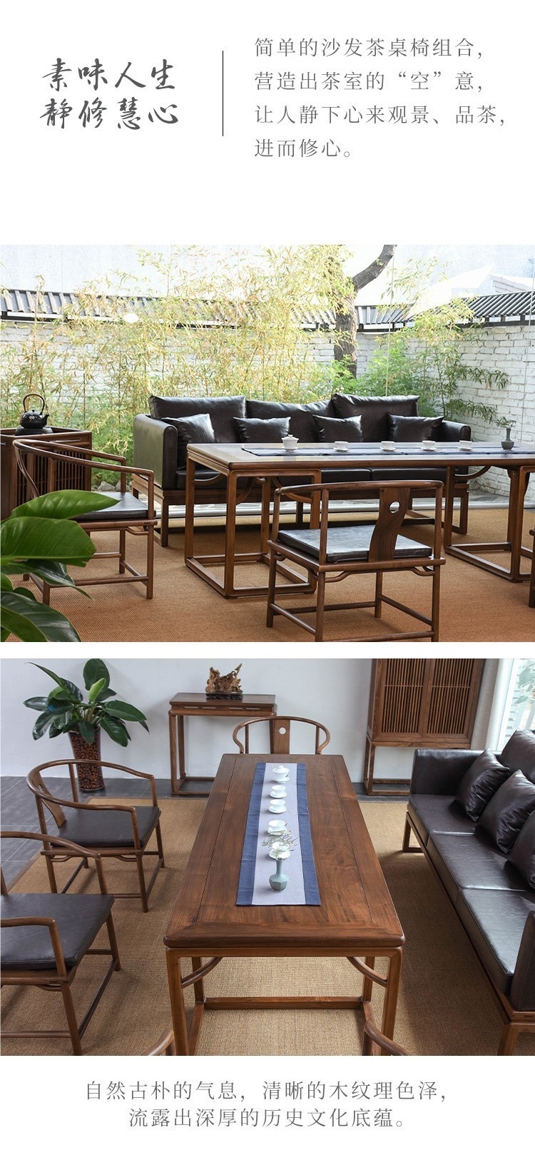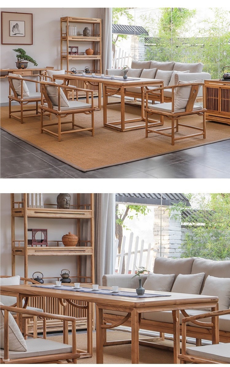 新中国式茶テーブルと椅子の古い楡木の茶台の黒い胡桃の木の実木はお茶のテーブルの禅意の茶室のソファーの茶卓の組み合わせを浸します。