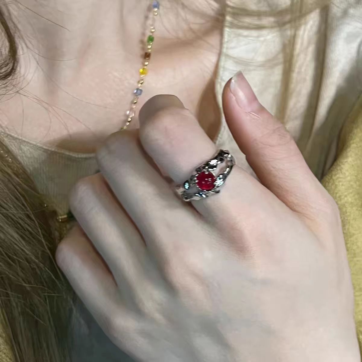 暗黑风爆款戒指肌理感开口戒小众设计感食指戒欧美朋克情侣对戒