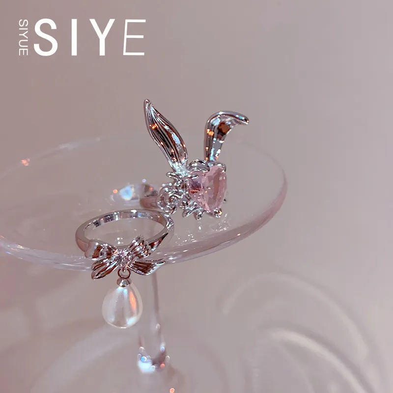 デザイナーの金2023年早春の甘い愛のピンクのダイヤモンドのウサギの指輪は逃げています。