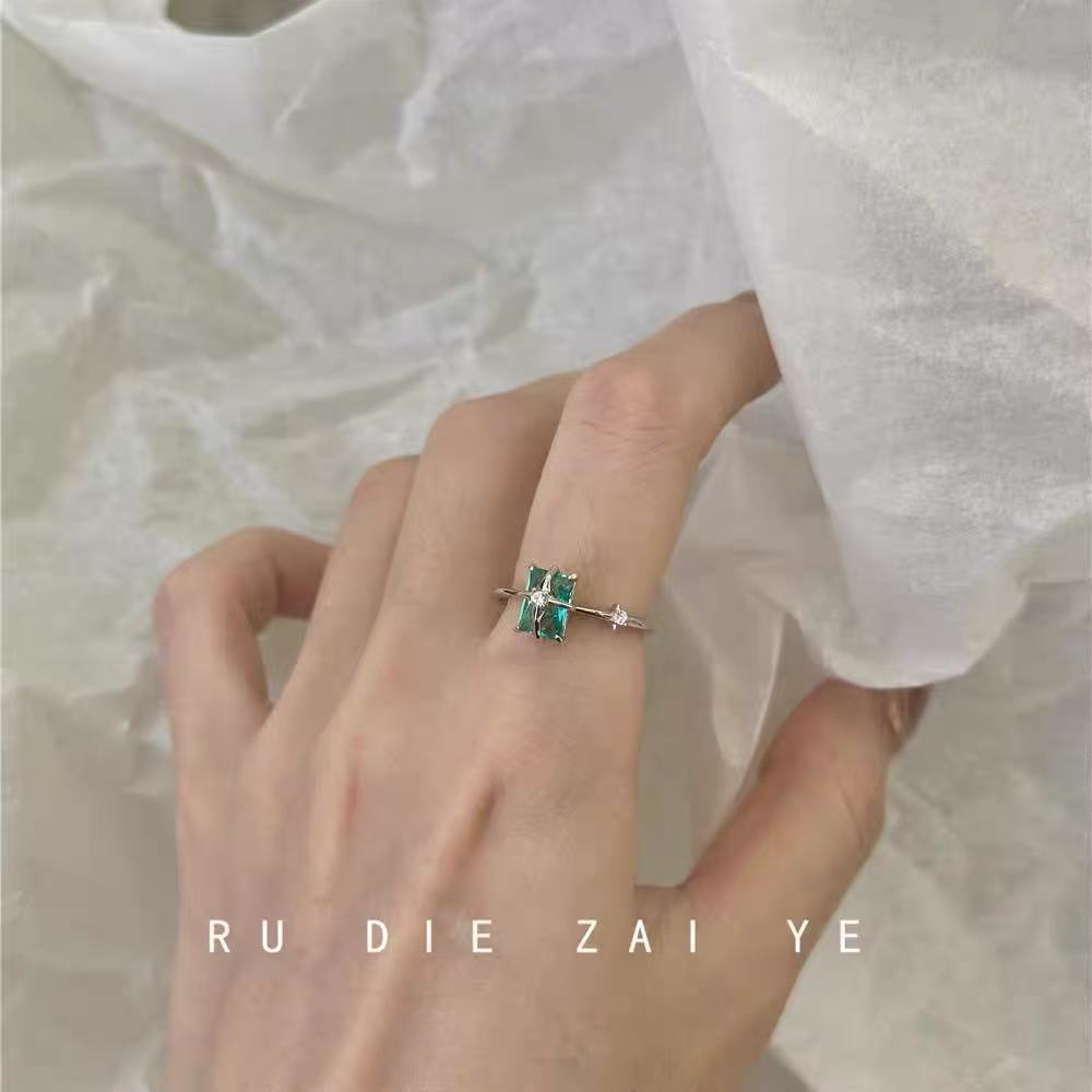 冷淡风薄荷方糖四芒星戒指ins风小众设计清新冰透锆石叠戴戒指