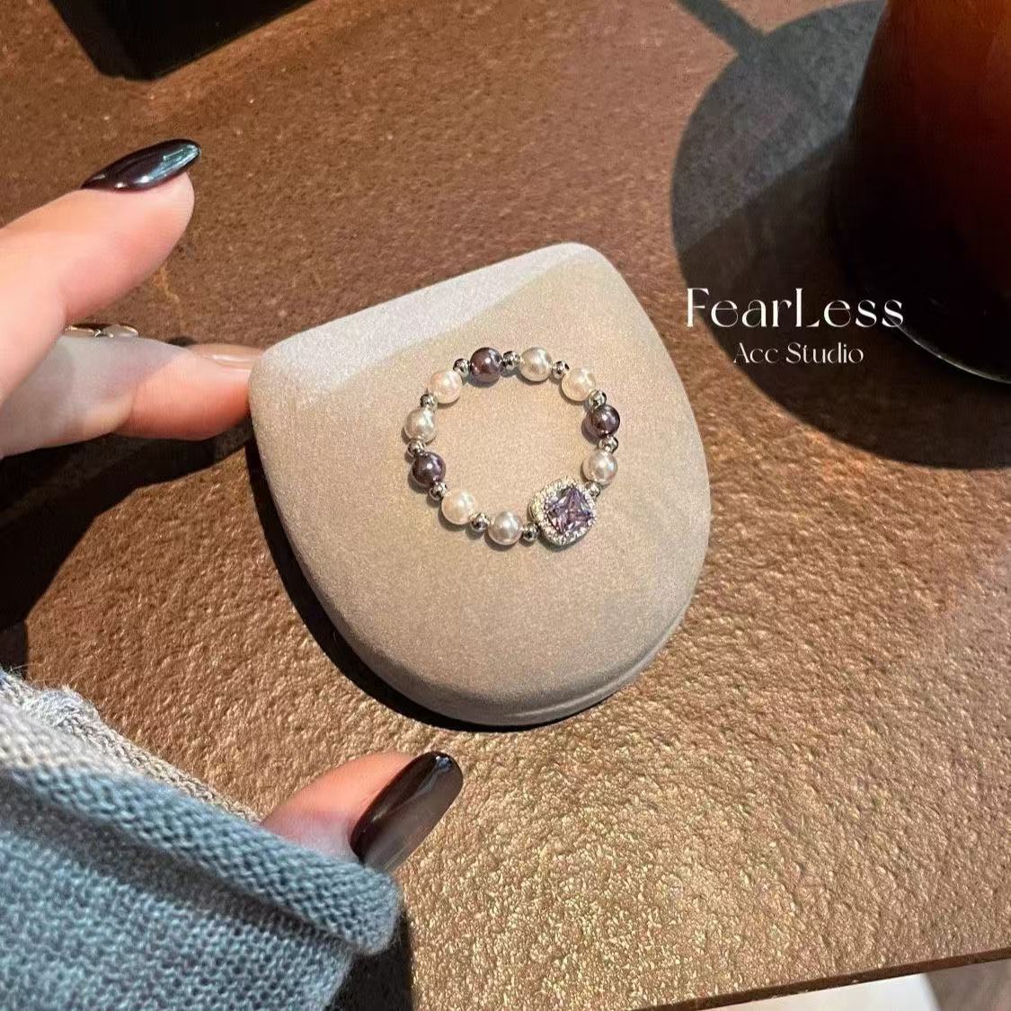 紫色珍珠弹力戒指女小众时尚调节戒指设计高级小众食指个性冷淡