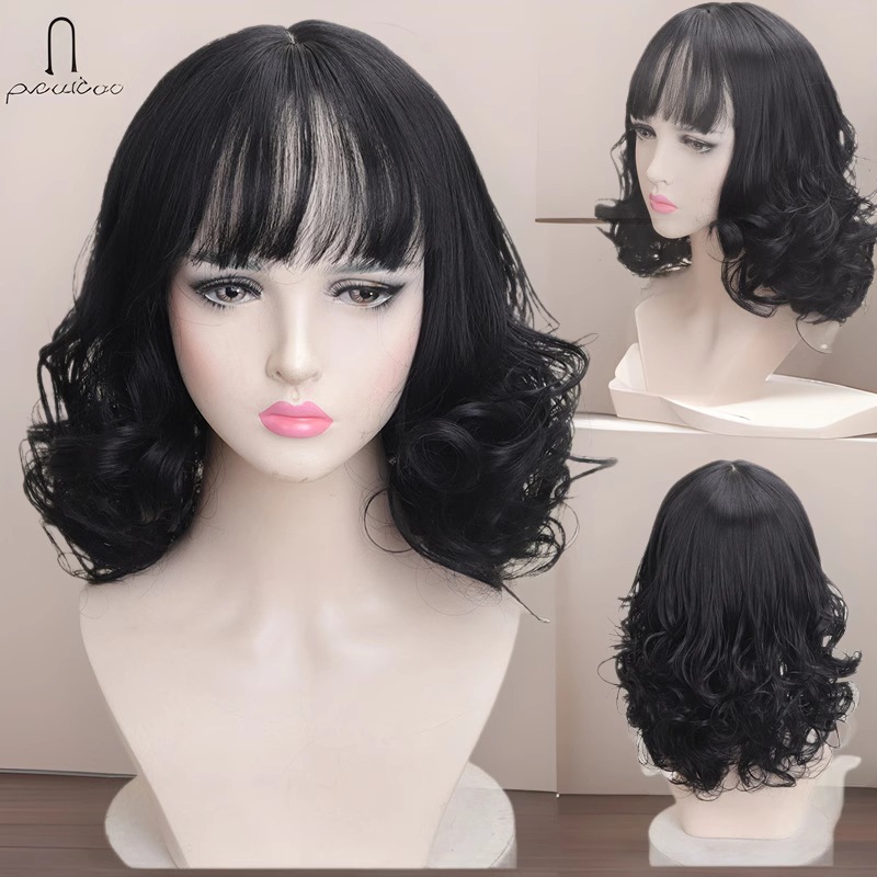 ファッション百合梨花巻かつら女性の全頭セット式漫画前髪lolitaは肩をそろえてふわふわした水の波紋を出している
