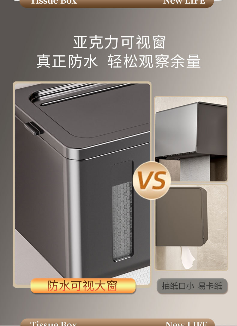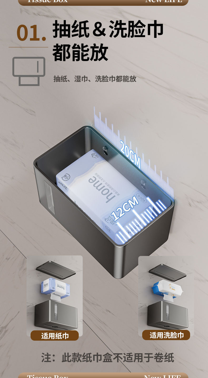 トイレティッシュボックストイレットトイレットペーパーボックス壁掛け式穴なし衛生ロール紙多機能ホルダー引き出しボックス