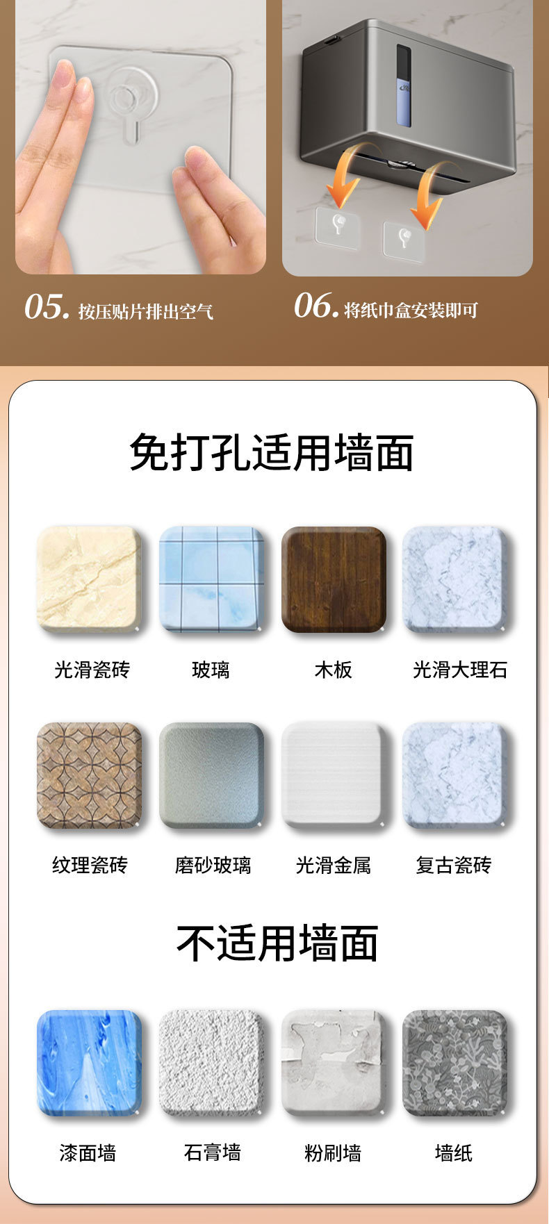 トイレティッシュボックス穴なし吸盤壁掛け式トイレトイレットペーパーホルダー